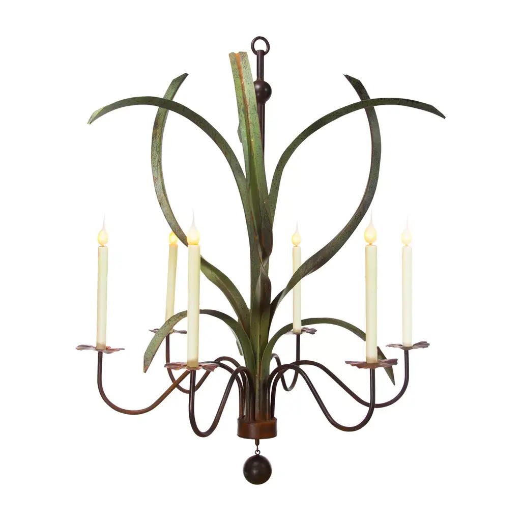 Grand in size and inspired by the graceful billows of marsh grass, the Laurelhurst chandelier is crafted from steel and features beeswax candle covers for added rustic charm. Ideal for grand foyers and rooms with a view, this refined chandelier is available in three finishes and each finish will produce a natural patina as it ages. These nature-inspired finishes protect the fixture but also create a more beautiful luster with time. This chandelier is made-to-order. Please select your finish before adding to cart.