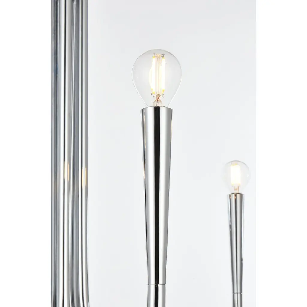 Equipped with six arms, this chandelier provides generous illumination to brighten up any space. Each conical end ensures a focused and balanced distribution of light, creating a warm and inviting atmosphere. The smooth and curved design of the tubular arms creates a gentle, inviting glow that bathes your room in a soft, diffused light. Enjoy a welcoming ambiance that beckons you to unwind and relax. The arms of this chandelier ingeniously stack vertically, forming a stunning display of tubes that adds depth and dimension to the overall design. This unique arrangement sets it apart from traditional chandeliers, making it a true conversation starter. Sloped ceiling adaptable with a durable swivel could be mounted on vaulted or angled ceilings.