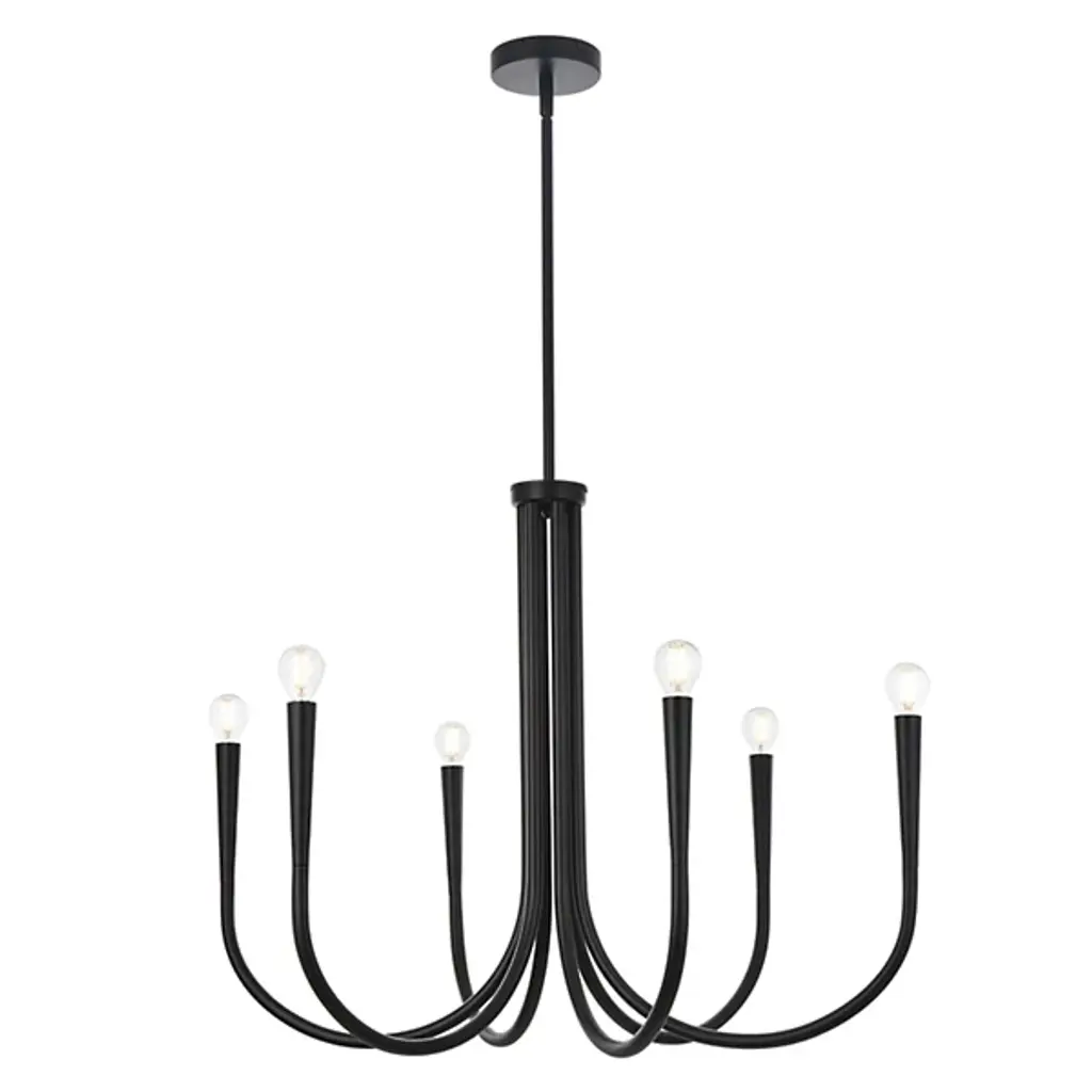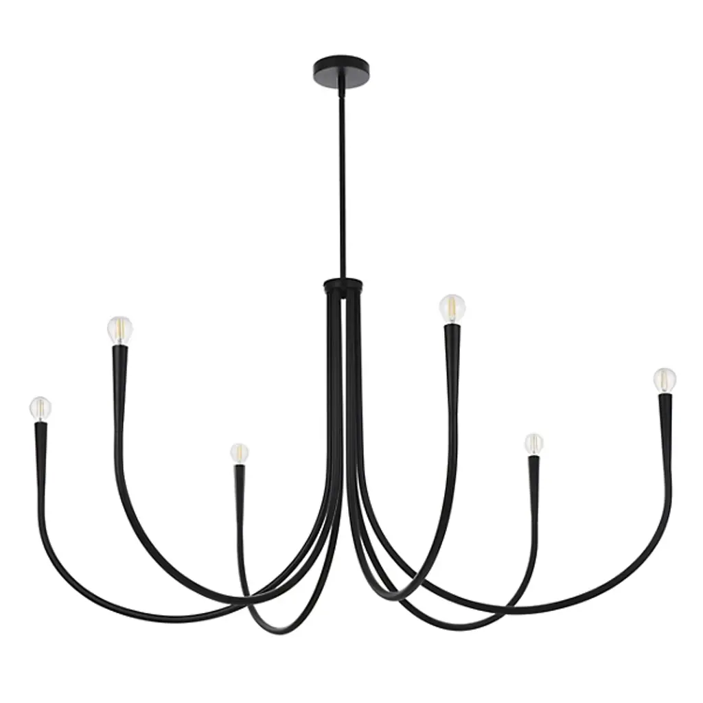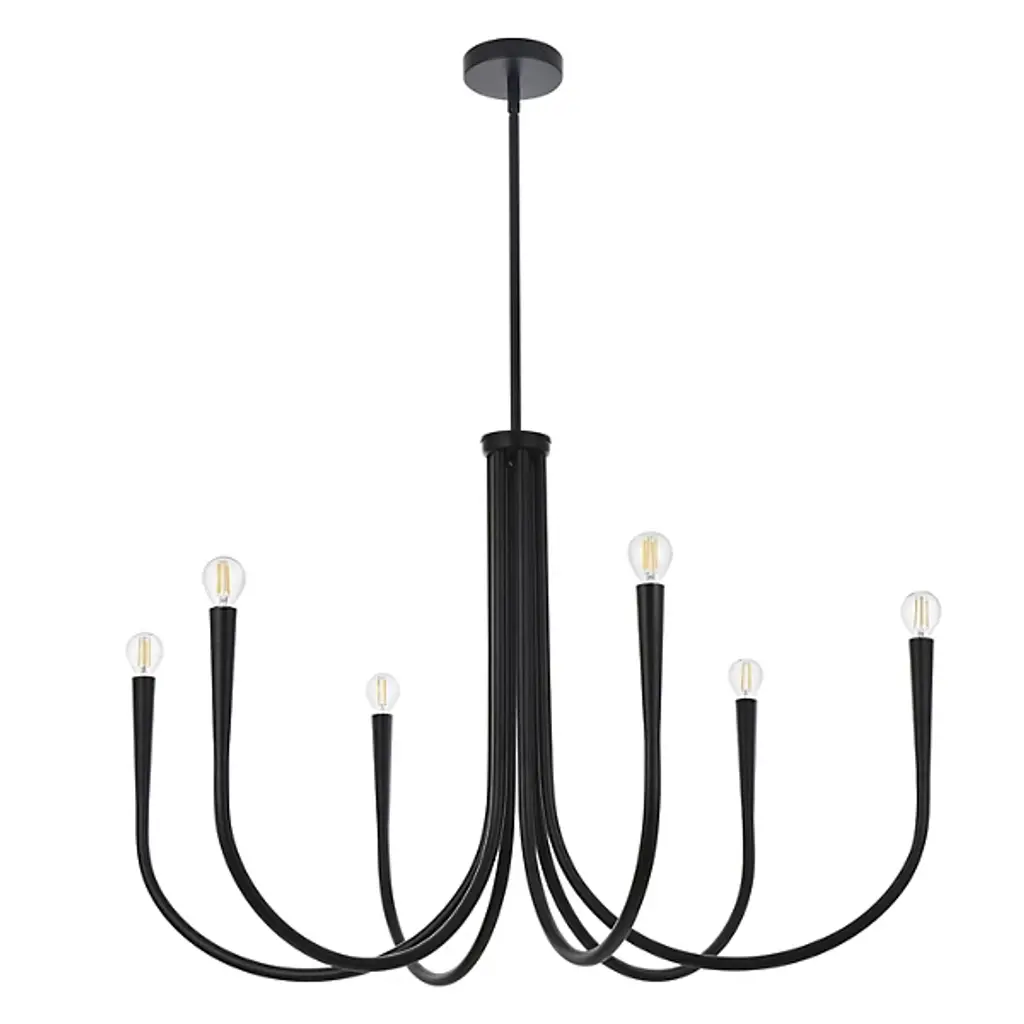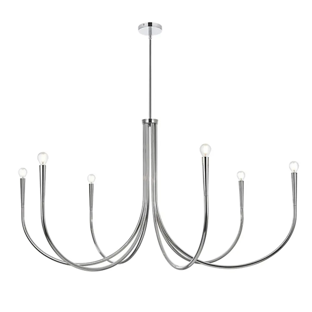 The Layne Chandelier from Elegant Lighting creates a visual rhythm that energizes the space while maintaining an air of refined poise. Six arms, each a graceful arc of metal, reach outward and upward like the petals of an abstract flower. The luminaire’s adjustable hanging system allows it to adapt to various ceiling heights, ensuring its dramatic profile is always perfectly positioned. This chandelier is ideal for gracing a grand foyer, defining a dining area, or anchoring a living room.