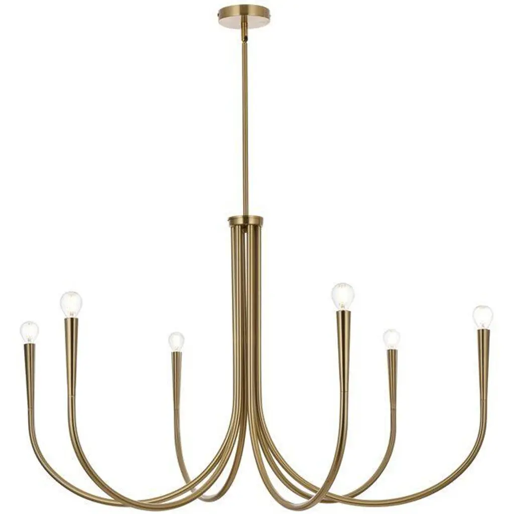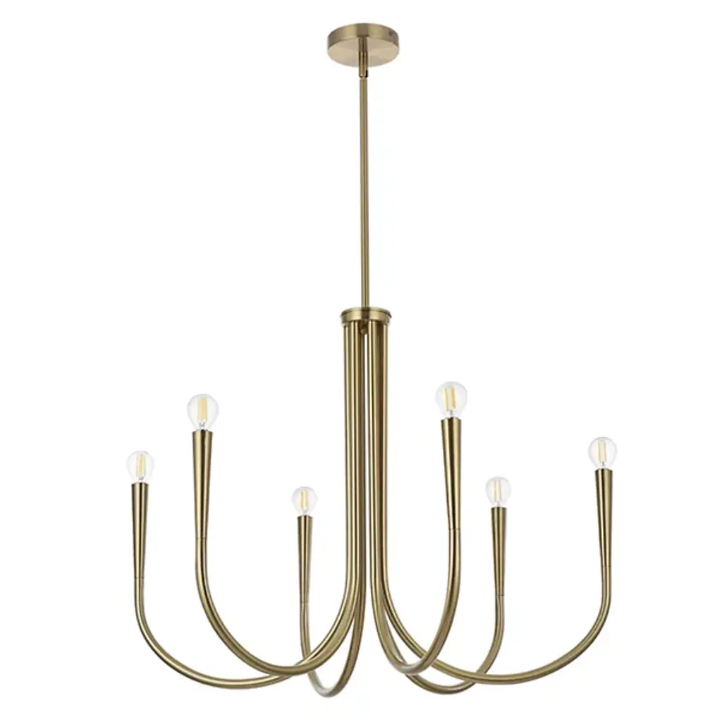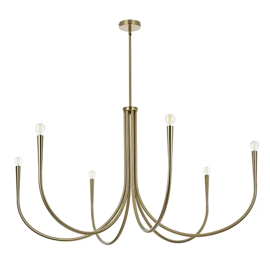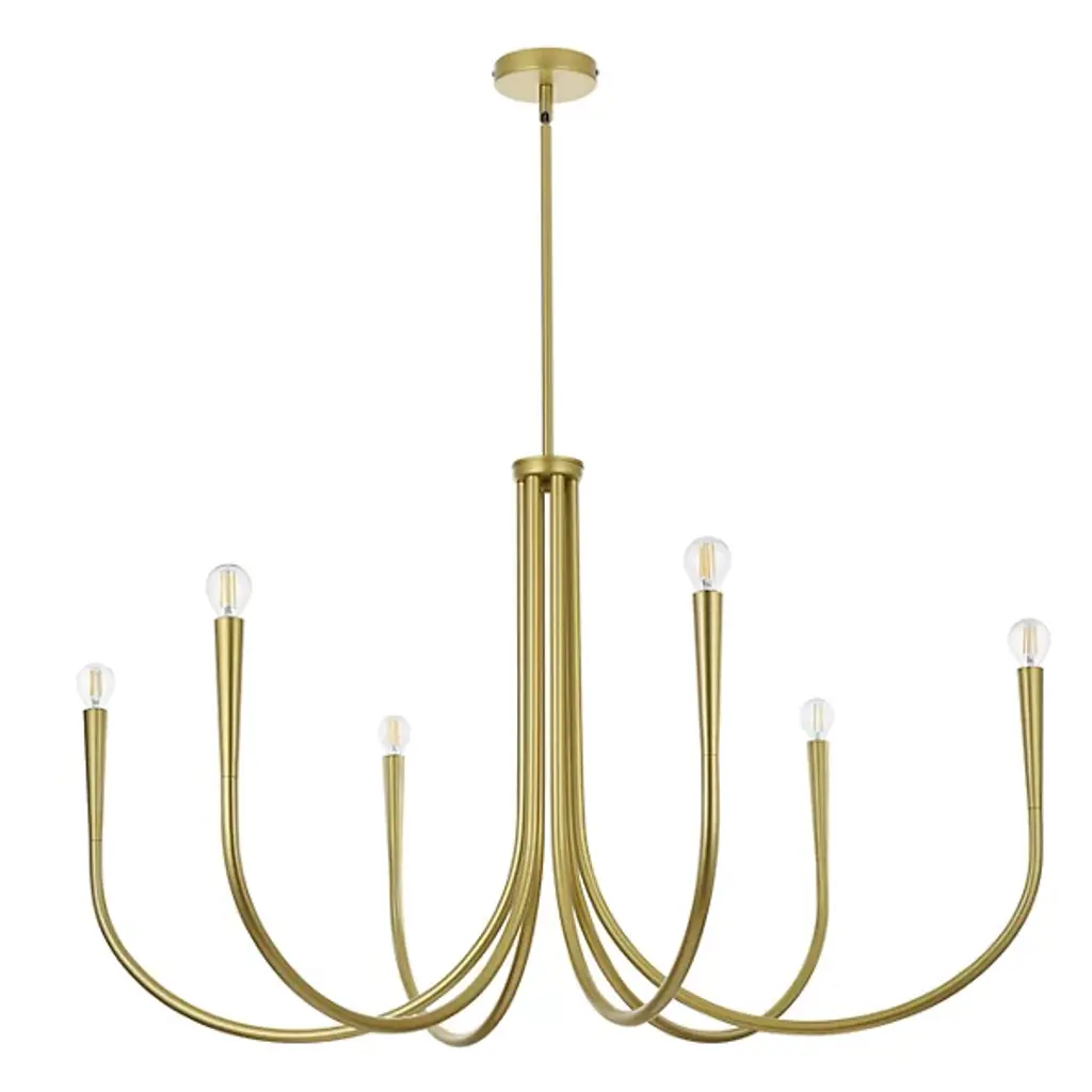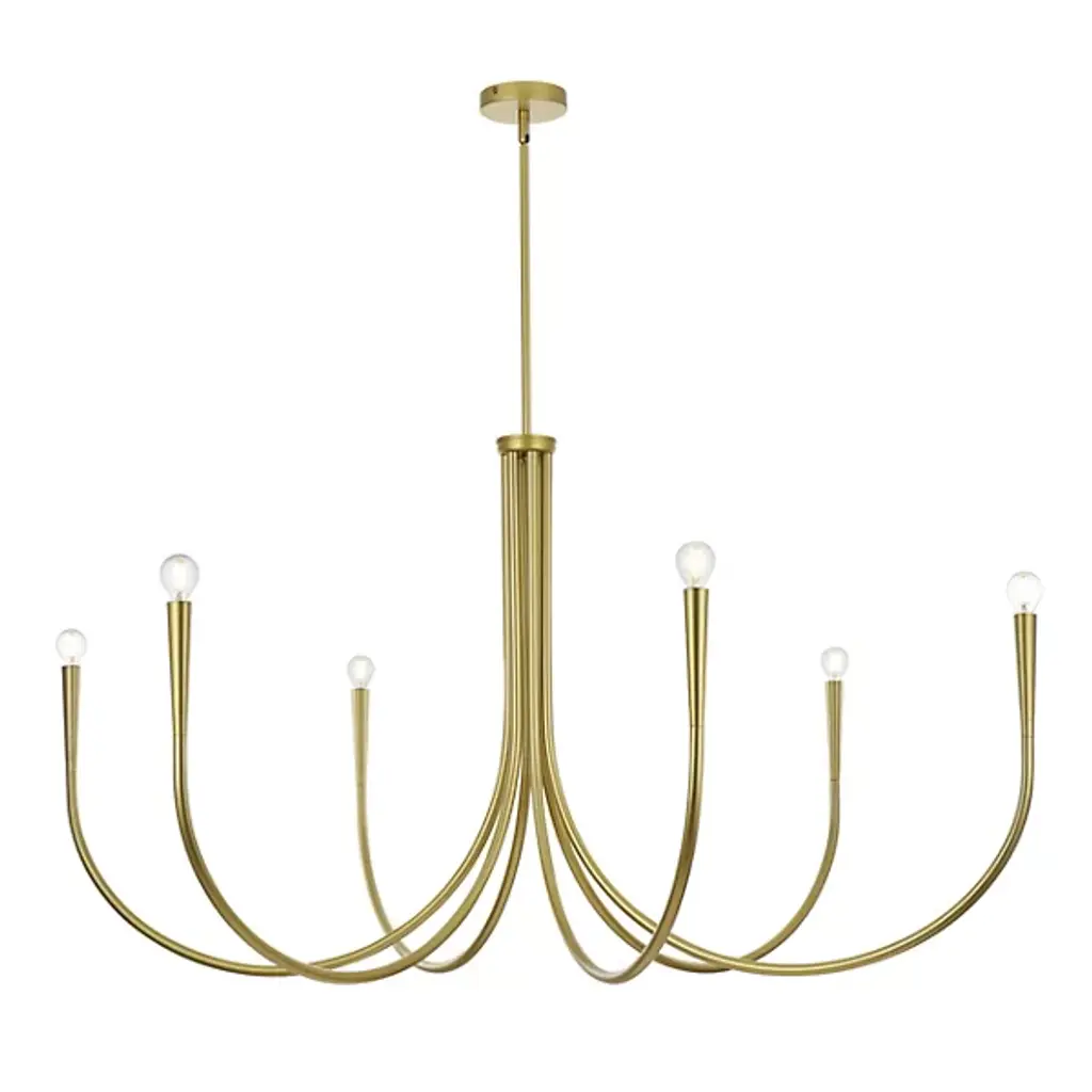 The Layne Chandelier from Elegant Lighting creates a visual rhythm that energizes the space while maintaining an air of refined poise. Six arms, each a graceful arc of metal, reach outward and upward like the petals of an abstract flower. The luminaire’s adjustable hanging system allows it to adapt to various ceiling heights, ensuring its dramatic profile is always perfectly positioned. This chandelier is ideal for gracing a grand foyer, defining a dining area, or anchoring a living room.