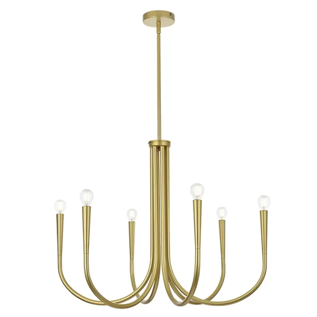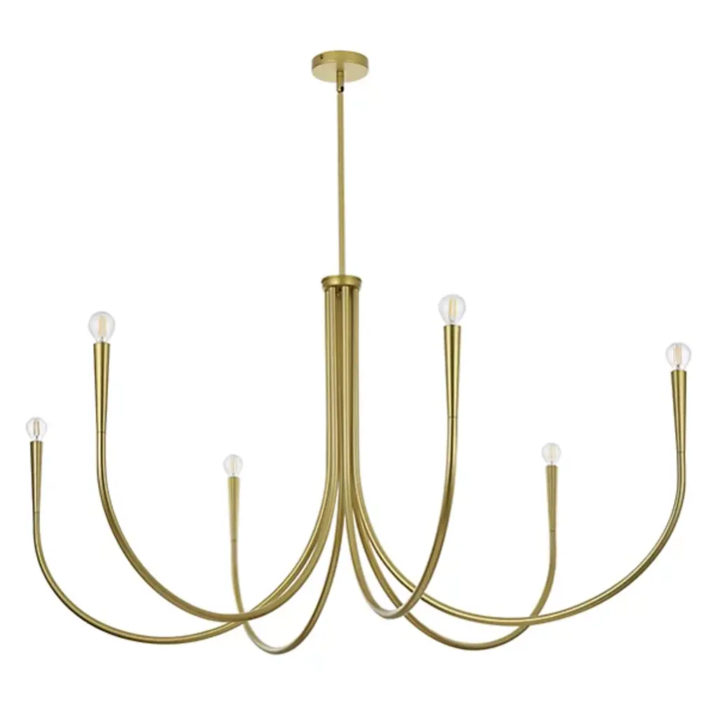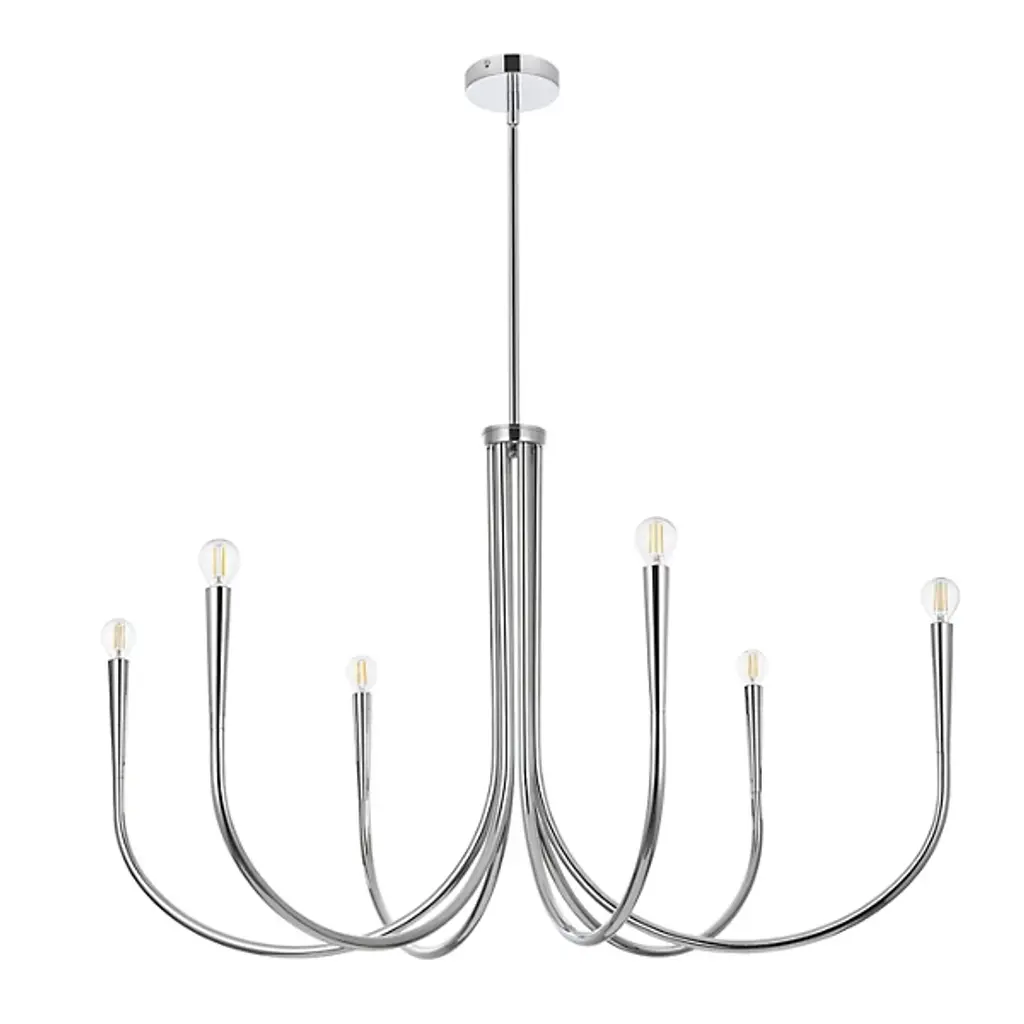 The Layne Chandelier from Elegant Lighting creates a visual rhythm that energizes the space while maintaining an air of refined poise. Six arms, each a graceful arc of metal, reach outward and upward like the petals of an abstract flower. The luminaire’s adjustable hanging system allows it to adapt to various ceiling heights, ensuring its dramatic profile is always perfectly positioned. This chandelier is ideal for gracing a grand foyer, defining a dining area, or anchoring a living room.