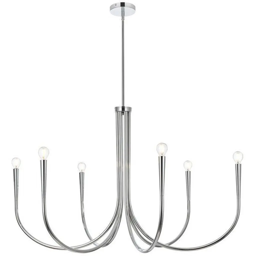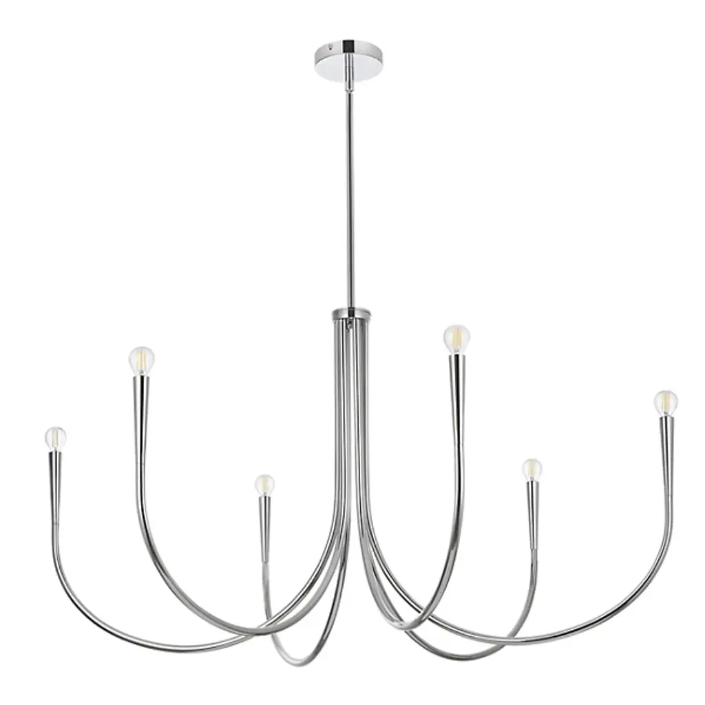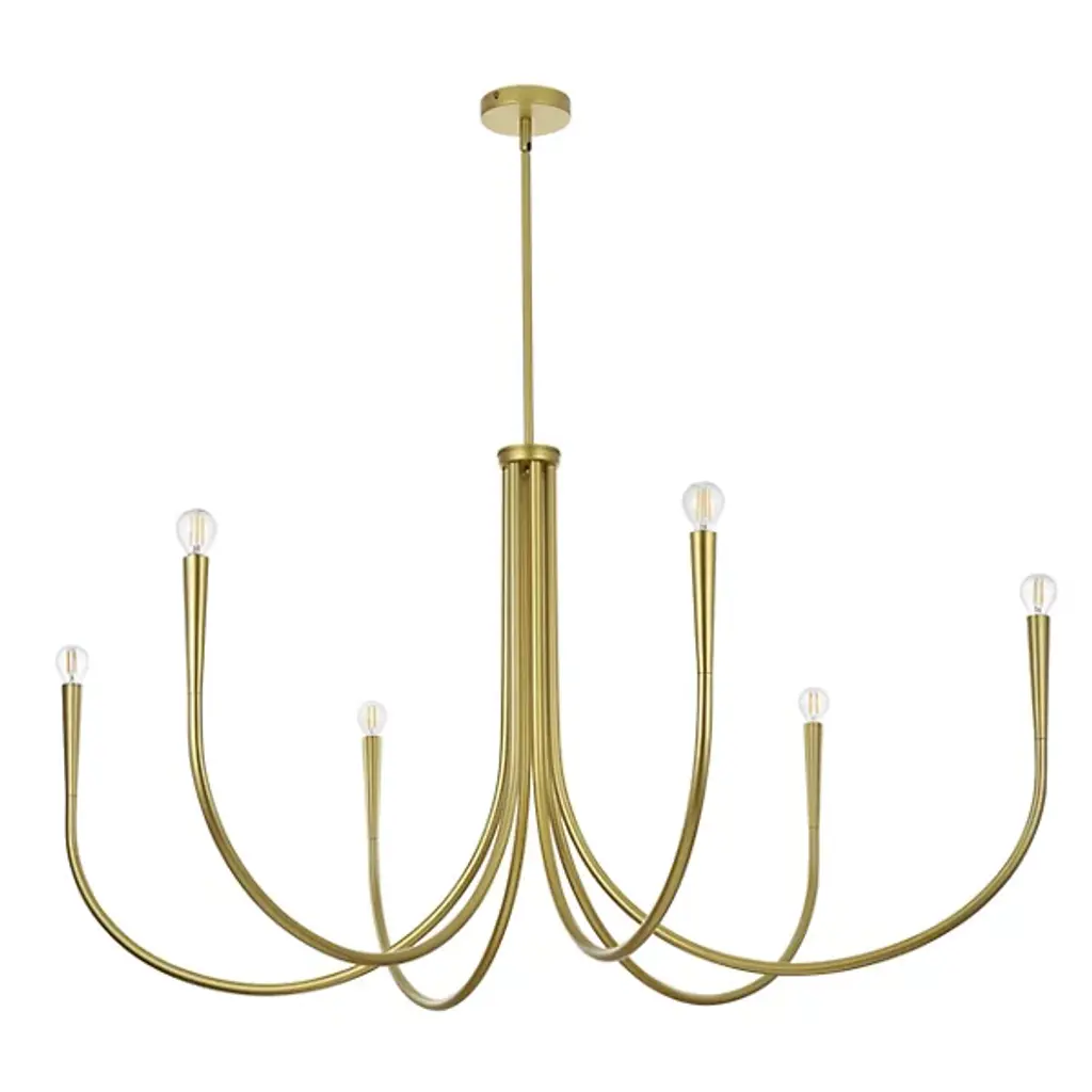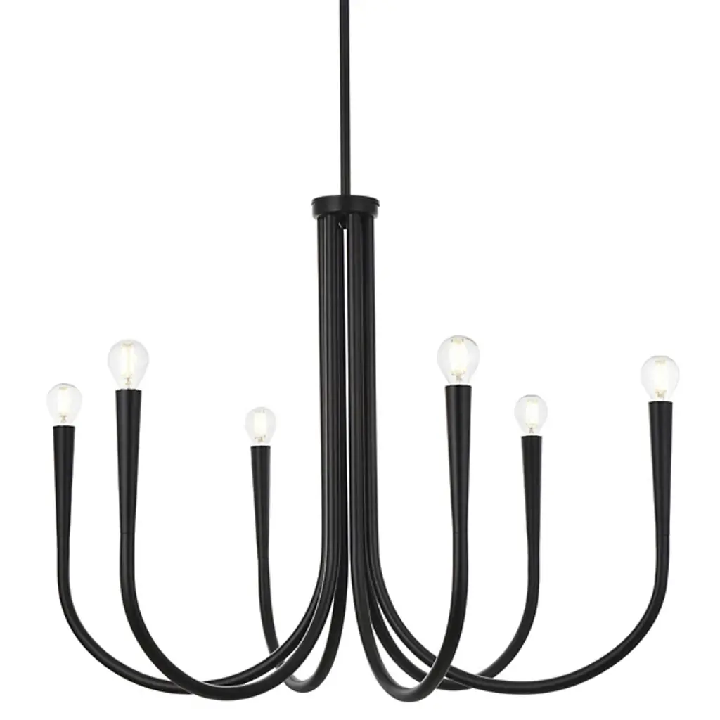 The Layne Chandelier from Elegant Lighting creates a visual rhythm that energizes the space while maintaining an air of refined poise. Six arms, each a graceful arc of metal, reach outward and upward like the petals of an abstract flower. The luminaire’s adjustable hanging system allows it to adapt to various ceiling heights, ensuring its dramatic profile is always perfectly positioned. This chandelier is ideal for gracing a grand foyer, defining a dining area, or anchoring a living room.