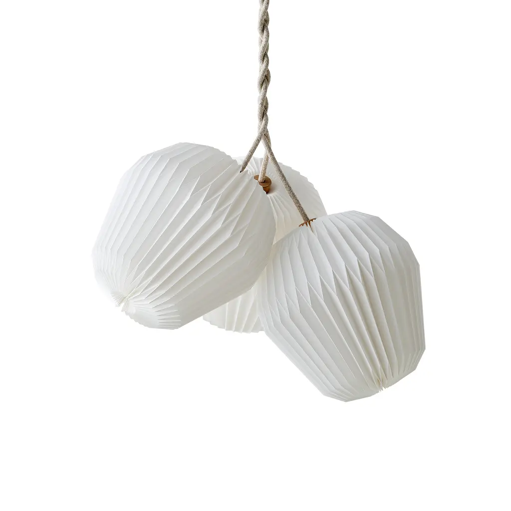Immerse your space in the warm, inviting glow of Le Klint’s Medium Bouquet Chandelier. With a design ethos deeply rooted in Scandinavian aesthetics, this distinctive pendant lamp effortlessly marries traditional craftsmanship with modern style. Drawing inspiration from the tender bloom of spring flowers, the chandelier has been meticulously hand-pleated by artisans at Le Klint’s original Pleating Studio in Odense, Denmark—a painstaking art form that takes years to master and one that lends an exquisite organic touch to every piece. The medium-sized chandelier, measuring 13.7″ in diameter and 15.7″ in height, houses a concealed E12 LED bulb, which casts an ambient, diffused glow, completely unobstructed from any angle. Elegant details, such as light oak elements and a braided linen-covered cord, enhance the chandelier’s rustic charm, while its white painted metal canopy offers a clean, minimalist finish. Read more Constructed with utmost precision using high-quality materials, every facet of this chandelier, from the hand-folded paper shade to the meticulous assembly process, echoes Le Klint’s dedication to quality, longevity, and design excellence. This masterpiece not only illuminates your home or office but also adds an unparalleled element of design sophistication. Please note, the bulb is sold separately.
