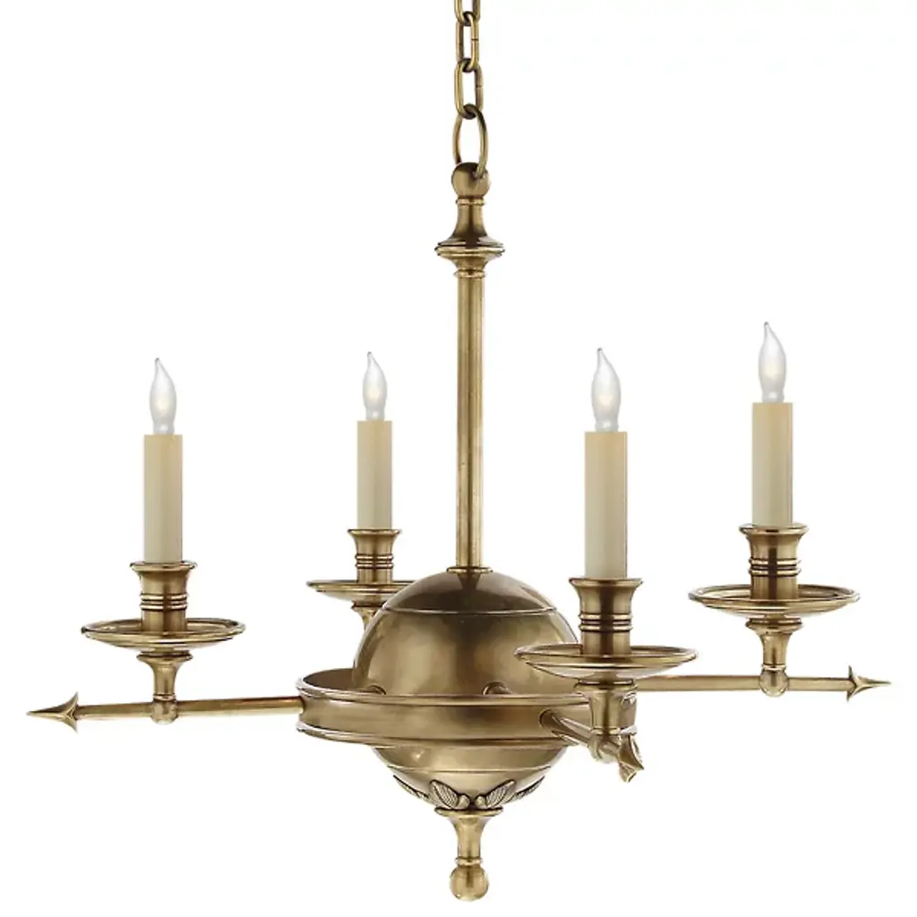Turn your home into a regal palace with the Leaf and Arrow Chandelier by Visual Comfort Signature, formerly known as Visual Comfort, From the shimmering chain-link cord to the striking blend of upscale elements, this chandelier will illuminate any living space in a dignified manner. Hang in an entertainment room and visitors will immediately admire your knack for crafting a sophisticated décor arrangement.