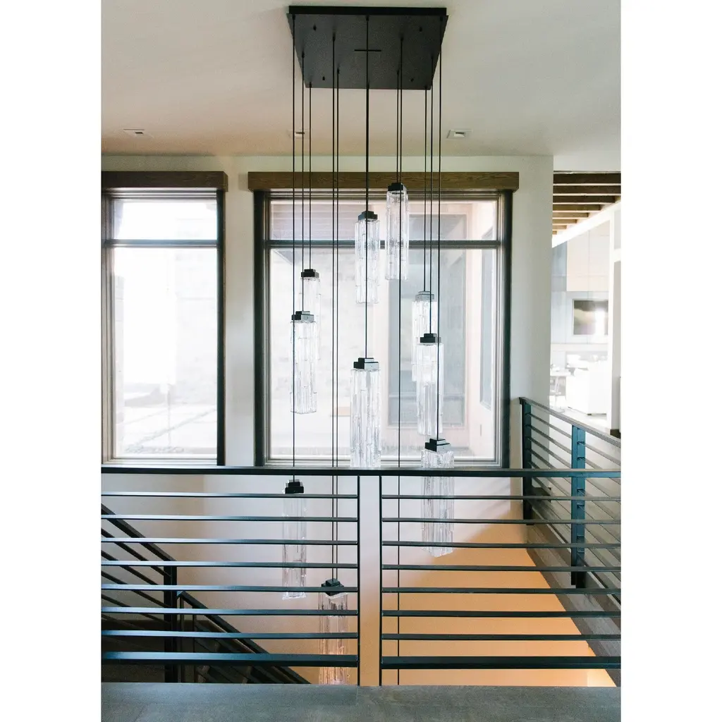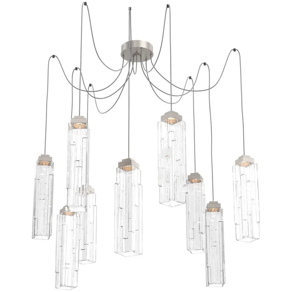 Ledgestone Square Multi-Port -09-Metallic Beige Silver-Ledgestone Blown Glass - Clear-Silver Cloth Braided Cord-LED