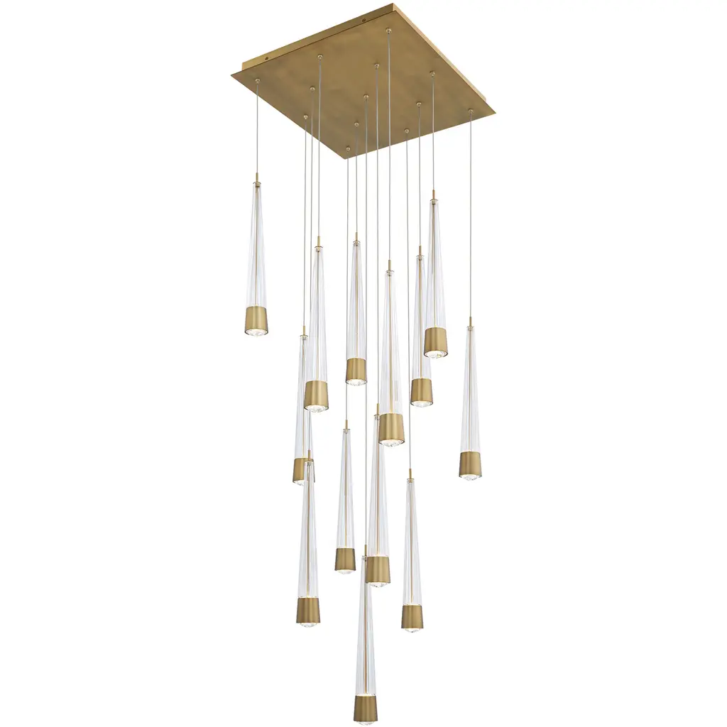 Ledgestone Round Multi-Port -08-Gilded Brass-Ledgestone Blown Glass - Clear-Brass Cloth Braided Cord-LED