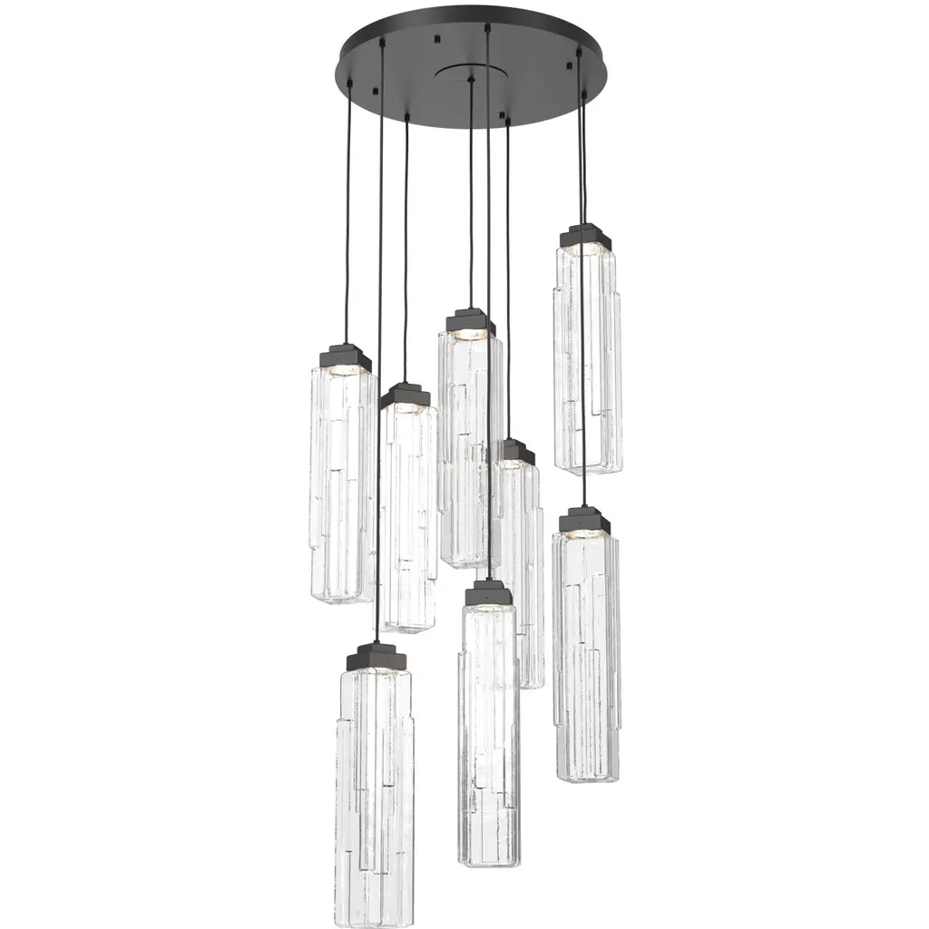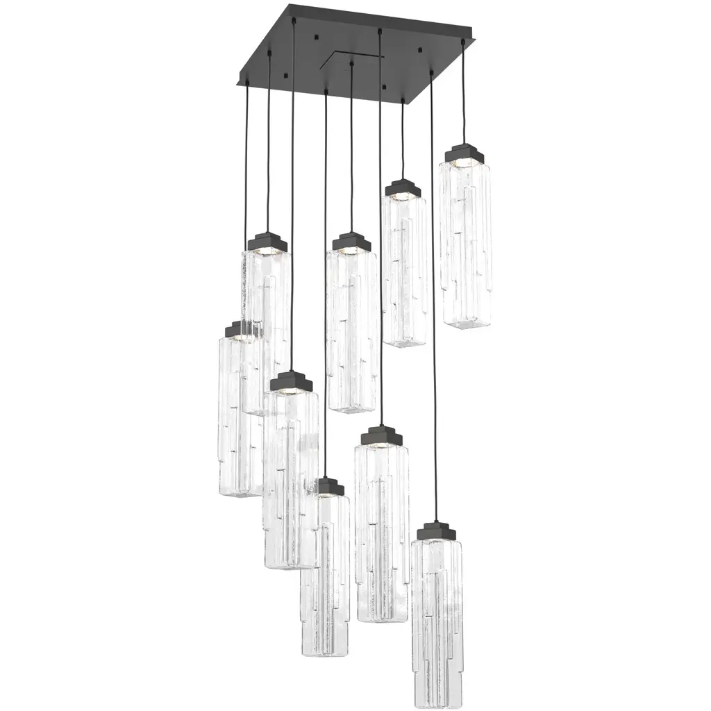 Ledgestone Square Multi-Port -12-Graphite-Ledgestone Blown Glass - Clear-Black Cloth Braided Cord-LED