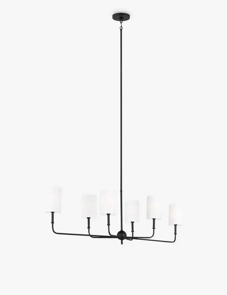 Refine your transitional edit with elevated lighting that brings the look together. This design transforms the classic chandelier profile with a sleek, linear frame and drum shades. We love this modern chandelier for a timeless finish over your kitchen island or dining table.