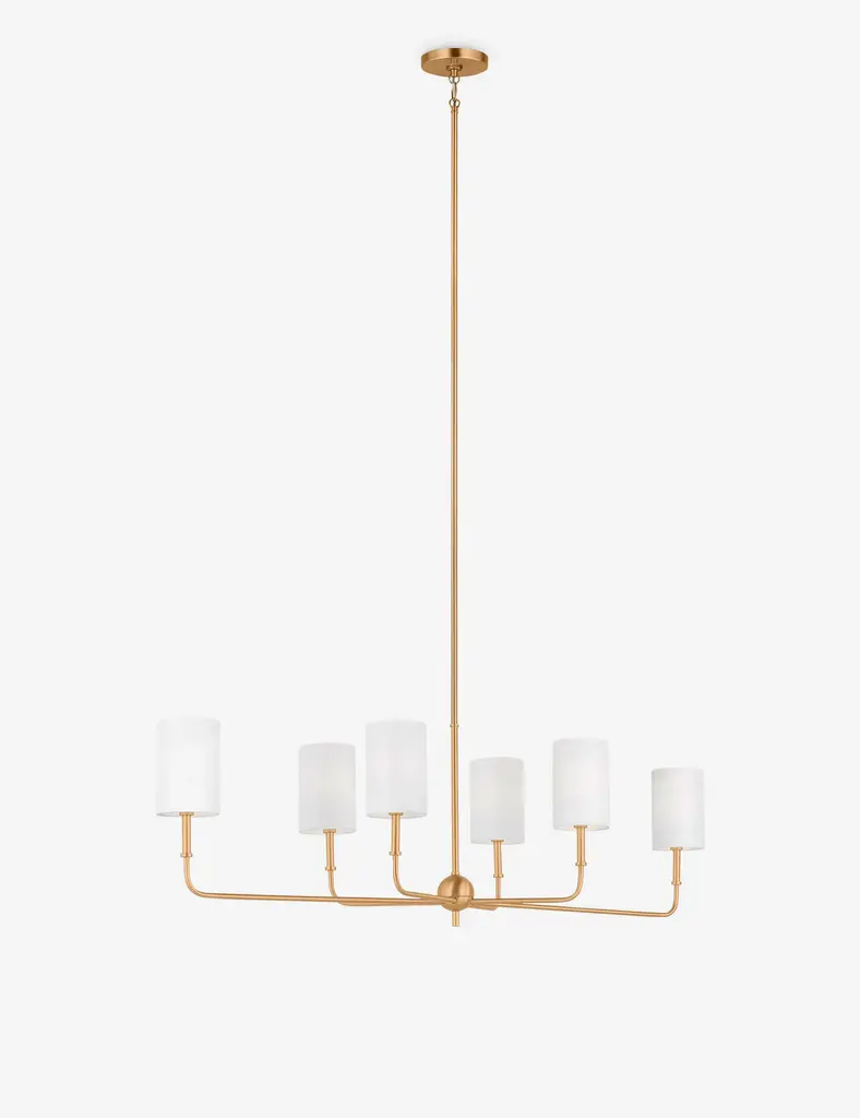 Refine your transitional edit with elevated lighting that brings the look together. This design transforms the classic chandelier profile with a sleek, linear frame and drum shades. We love this modern chandelier for a timeless finish over your kitchen island or dining table.