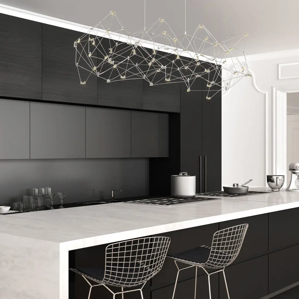 Dozens of twinkling LED lights are placed at the end of fine rods, creating intricate geometric forms that float effortlessly above. This unique source of illumination has a glossy, polished frame available in three sizes to bring a starburst of light to various room settings. Create your own personal star phenomenon indoors with the Leonardelli collection that glimmers and shines remarkably