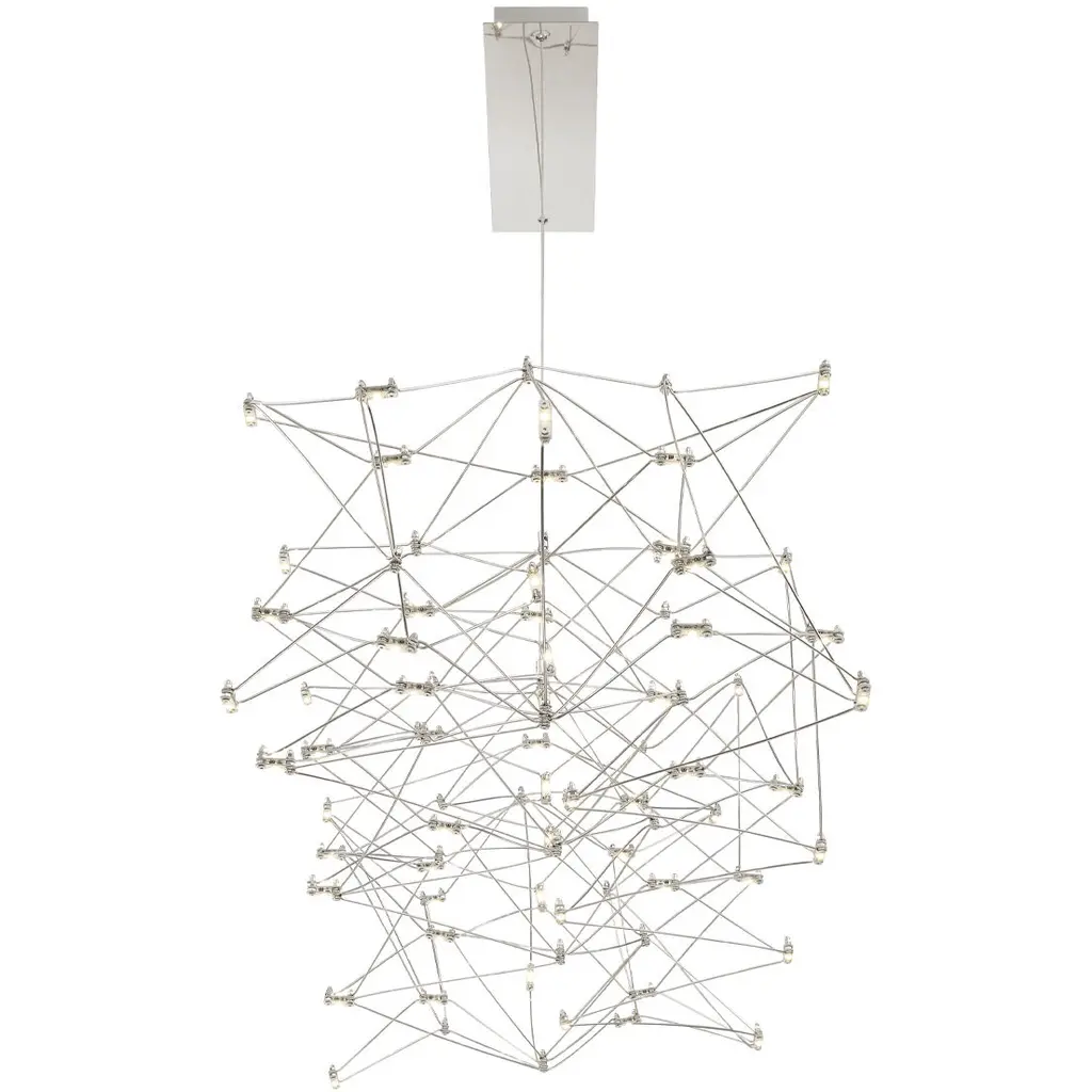 Dozens of twinkling LED lights are placed at the end of fine rods, creating intricate geometric forms that float effortlessly above. This unique source of illumination has a glossy, polished frame available in three sizes to bring a starburst of light to various room settings. Create your own personal star phenomenon indoors with the Leonardelli collection that glimmers and shines remarkably