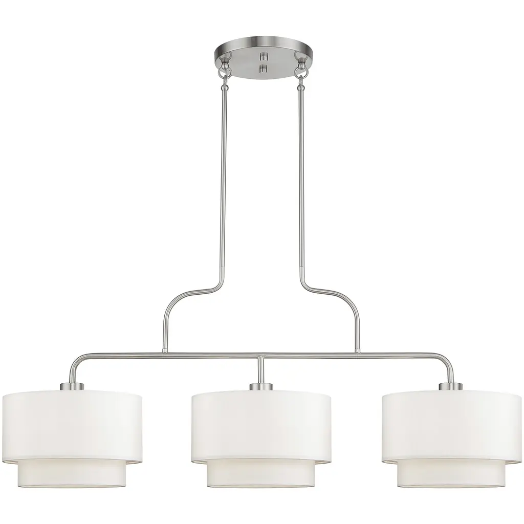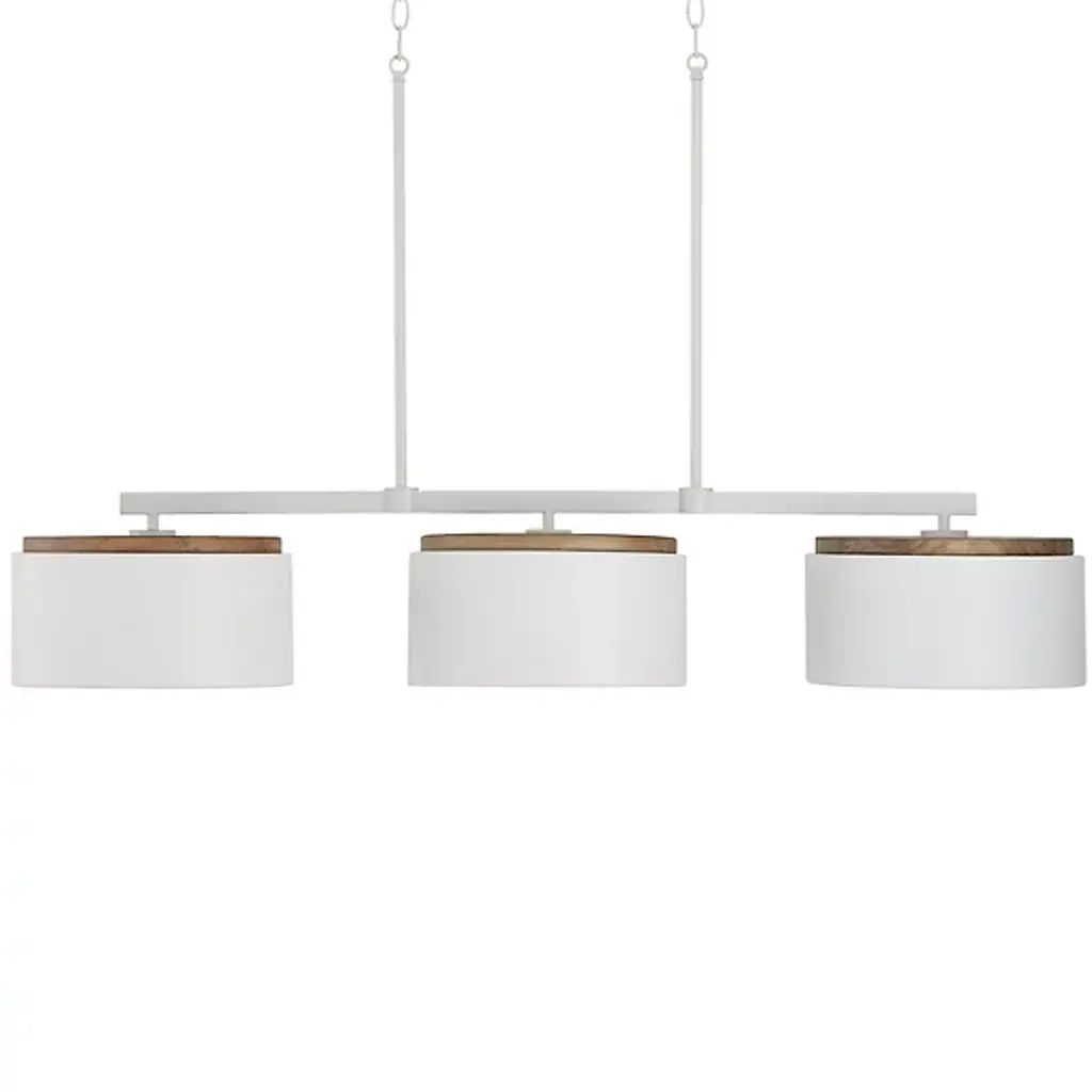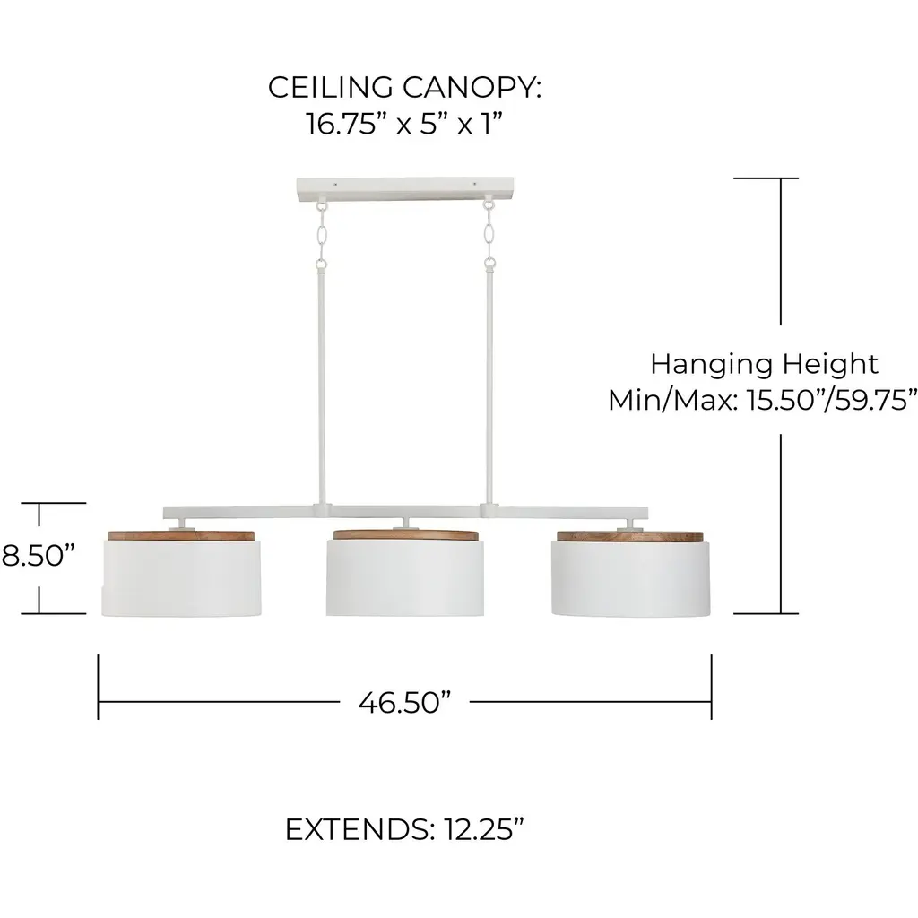 Liam 3 Light 46.5 Inch Light Wood And White Linear Chandelier Ceiling Light