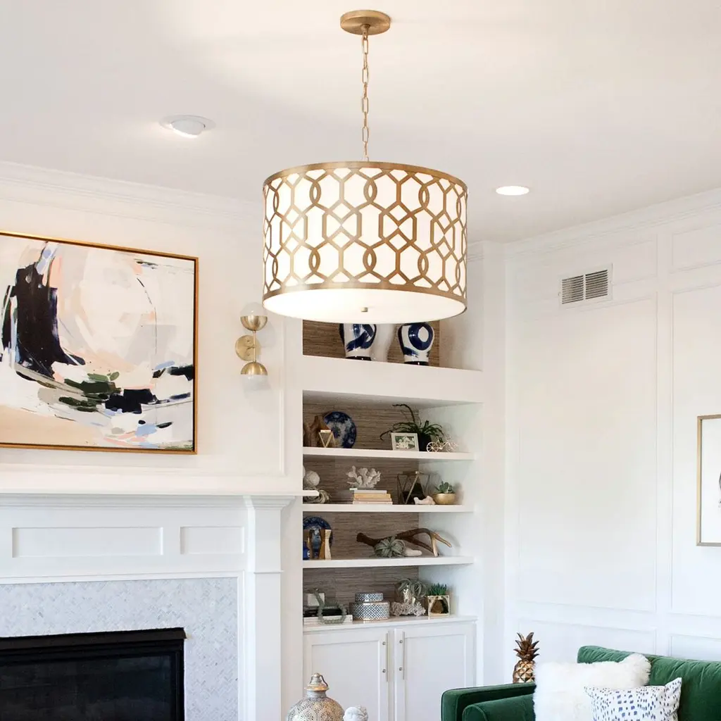 The geometric design of this steel fixture gives it a graphic sensibility, while an inner linen shade adds texture and helps soften the light. Hardwired.