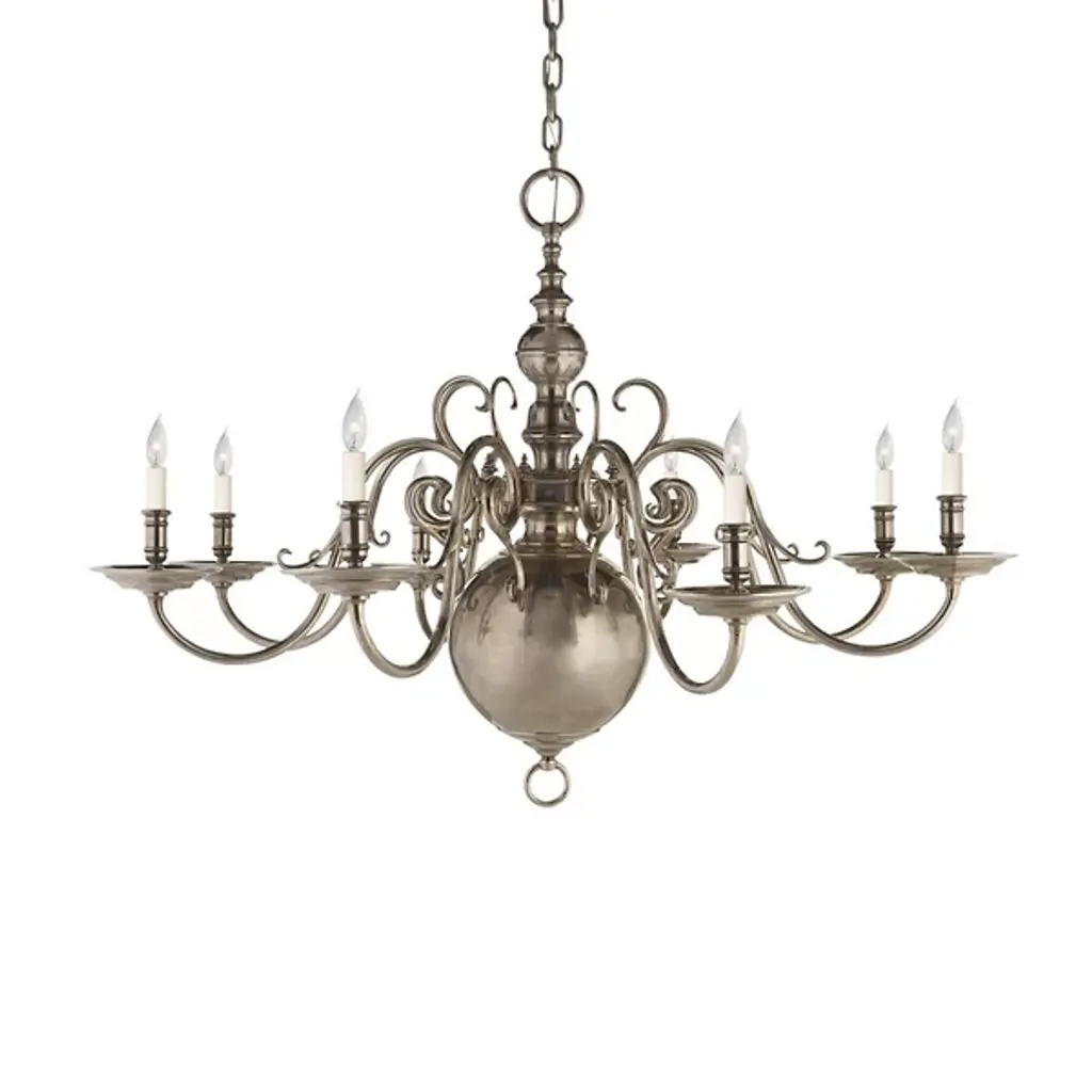 Add traditional elegance to the home with the Lillianne Chandelier from Visual Comfort Signature, formerly known as Visual Comfort, Resembling a dramatic and eye-catching piece from times past, this piece retains the appealing curves and intricate details that made its ancestors stand out. A large, smooth orb rests at the base of this piece. It’s accented and flanked by a series of candelabra-style lamp holders that present at the end of grand, gracefully swooping arms. The light emitted fills the space with ease, shaping the ambiance into a welcoming and comforting area.