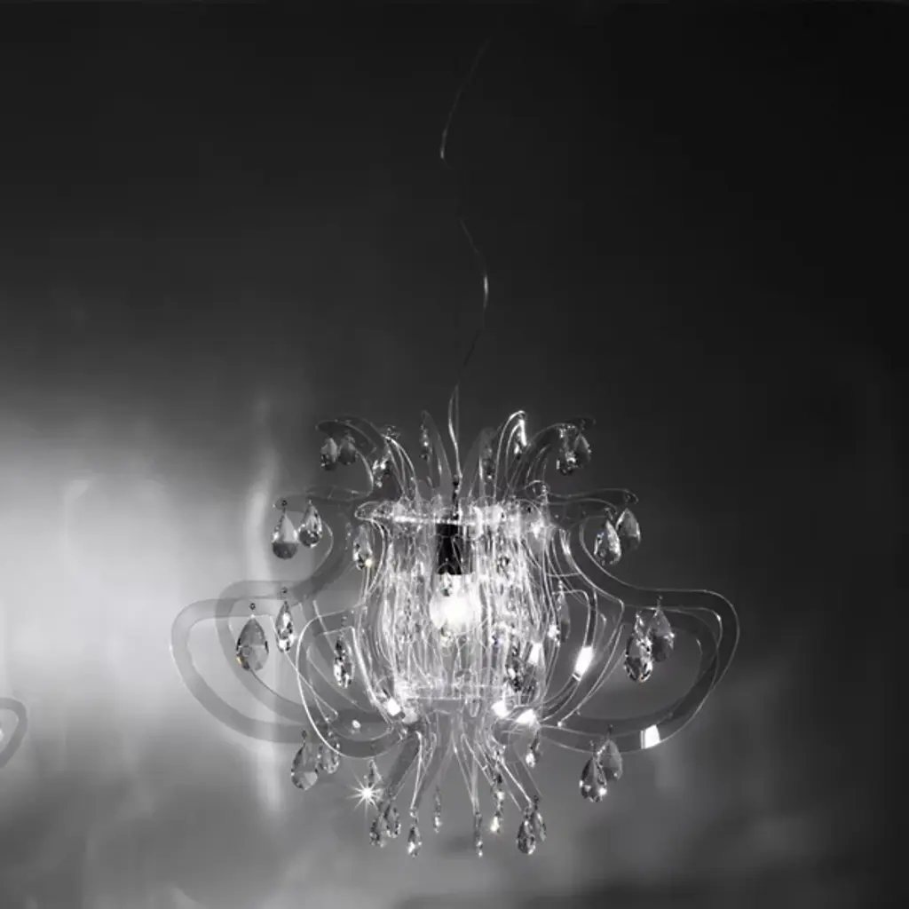Discover stunning lighting design with the Slamp Lillibet Chandelier. Not only does it contain 56 sparkling crystals within a strong body of opalflex and cristalflex, but it creates the most intriguing shapes and shadows on walls and ceilings. A contemporary piece that does more than just illuminate.