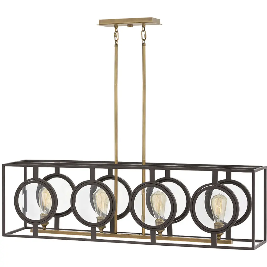 The Natural Brass finish on this Linara 5 light linear chandelier, is like jewelry to the Matte Black metal slatted shade. A refreshing twist on contemporary and midcentury modern d‚cor.