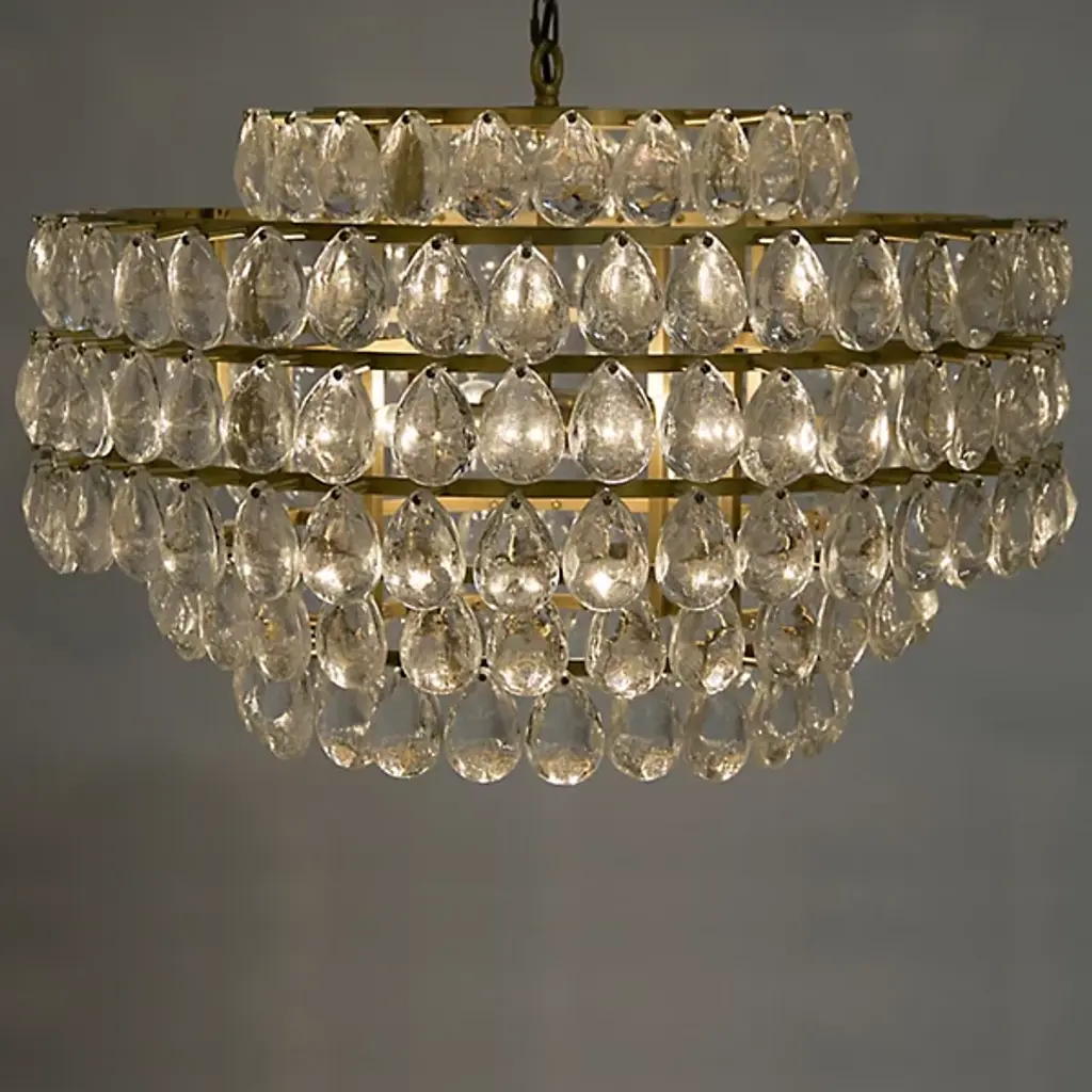 The Linden Chandelier from Noir offers the ultimate in Art Deco-inspired glamour, and this opulent masterpiece is adorned with cascading glass crystals, which creates a dazzling spectacle of light and luxury. Whether illuminating your living room, dining area, or any other room in your home, the Linden Chandelier ensures an infusion of drama and radiance. Elevate your space with this exquisite luminary that seamlessly blends classic elegance with modern sophistication.