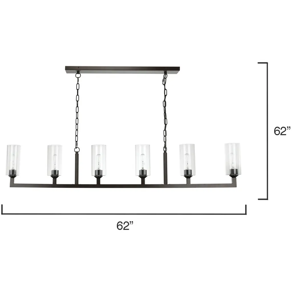 Linear 6 Light 62 Inch Oil Rubbed Bronze Linear Chandelier Ceiling Light