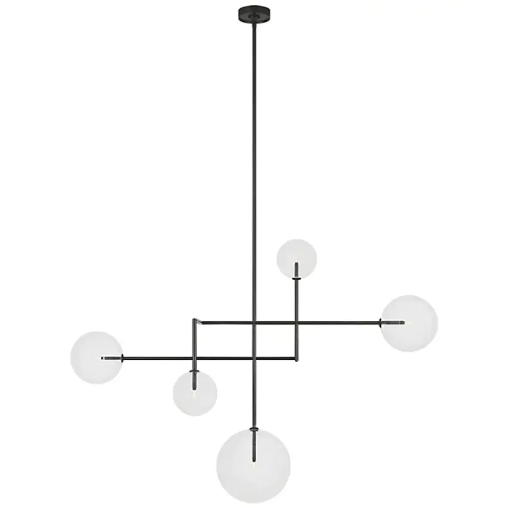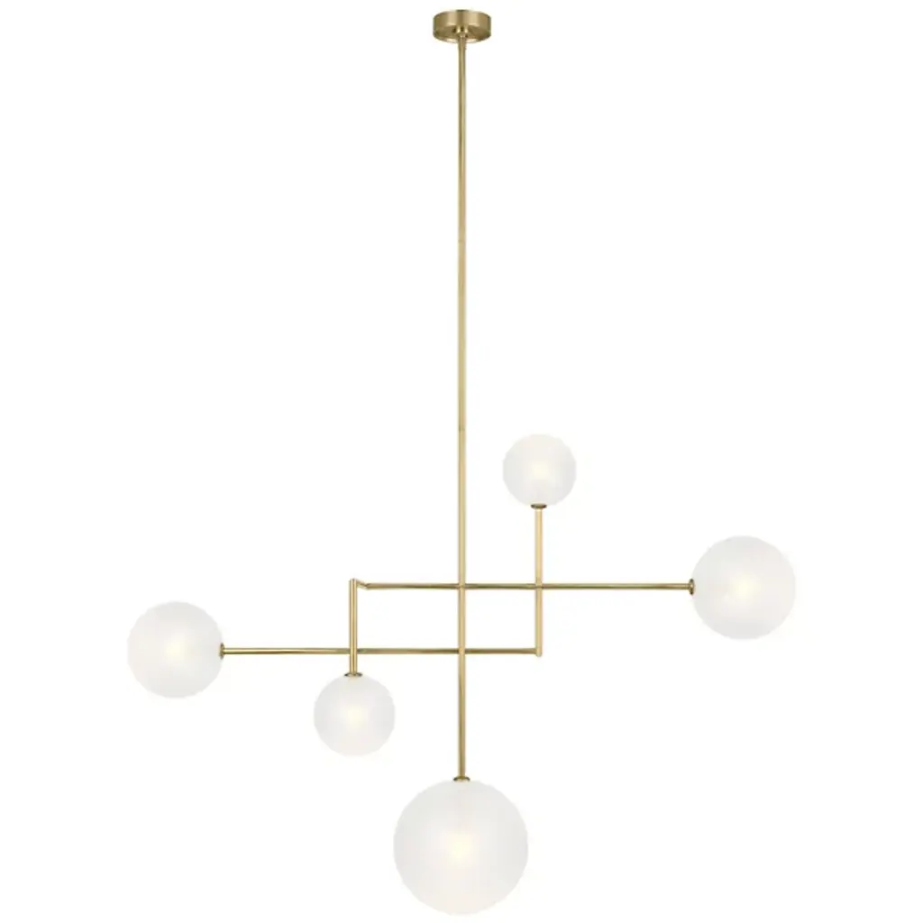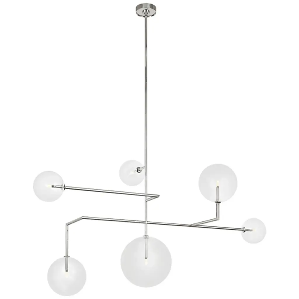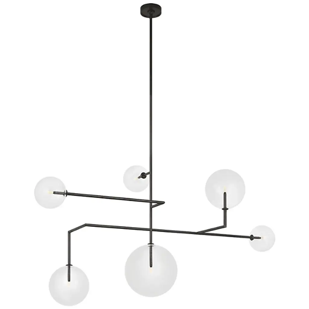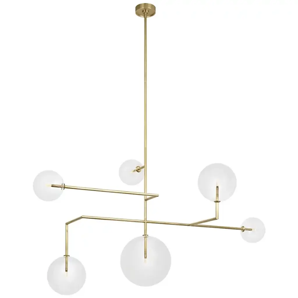 The Linnea LED Chandelier from Visual Comfort Signature represents Aerin's interpretation of orbital movement. Steel arms extend at varying lengths in a calculated asymmetric pattern, each terminating in a luminous glass bulb. These transparent spheres appear to float within the space, creating multiple planes of illumination. This fixture particularly shines in grand foyers, above modernist dining tables, or in architectural stairwells where its dimensional quality can be fully appreciated.