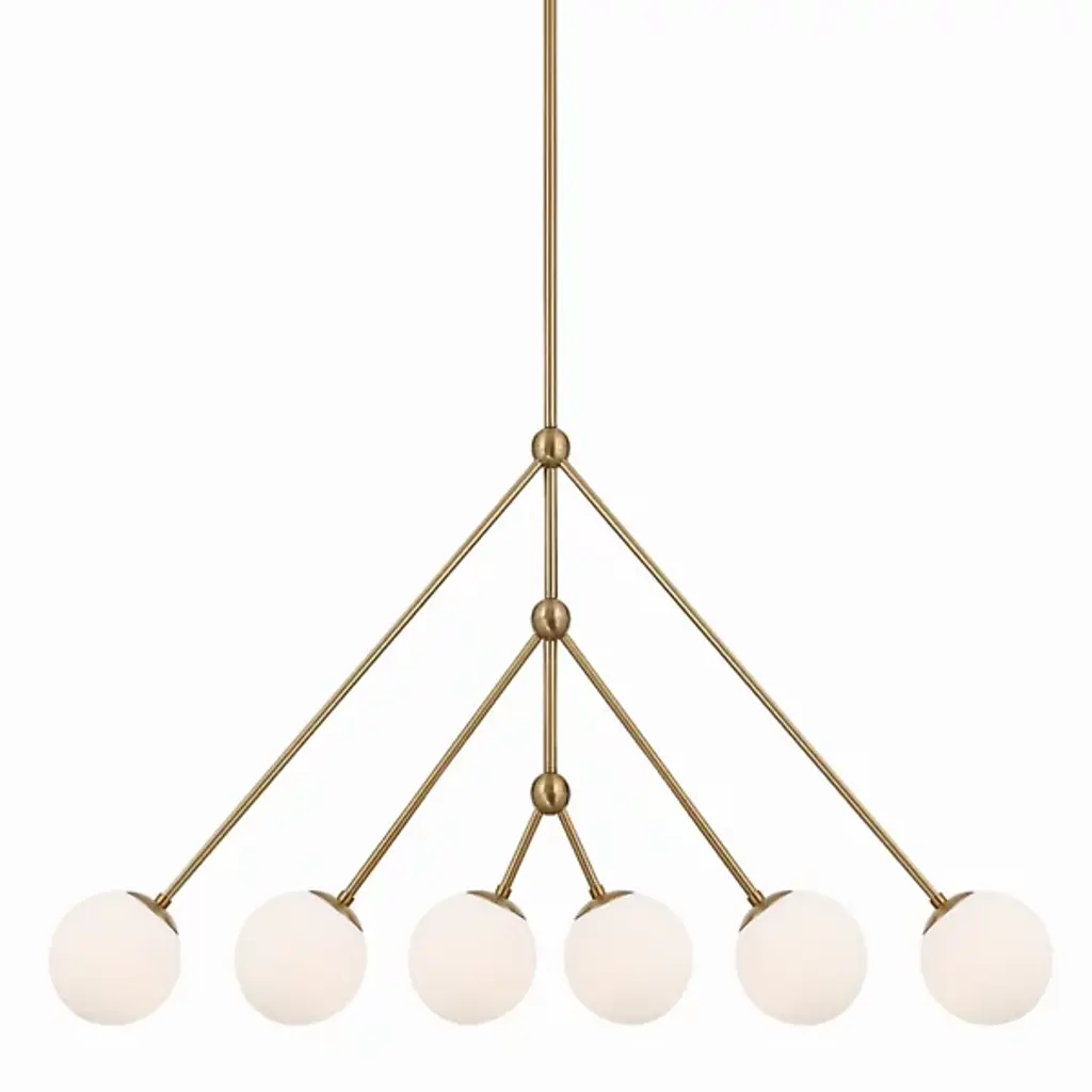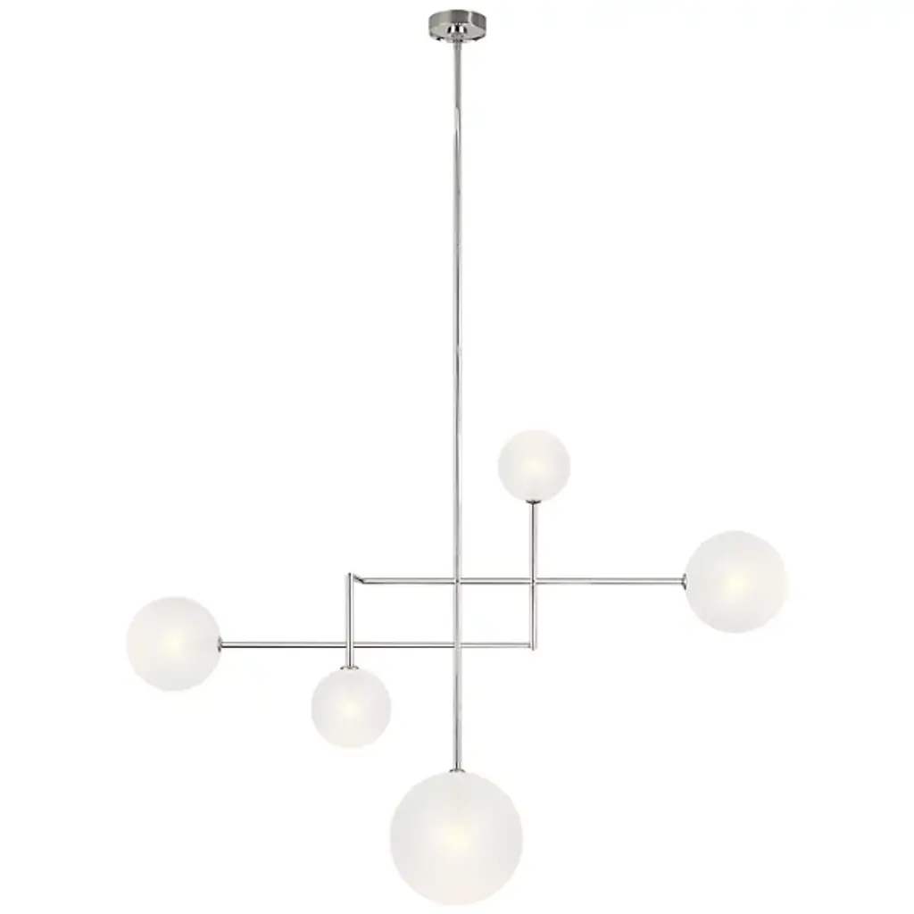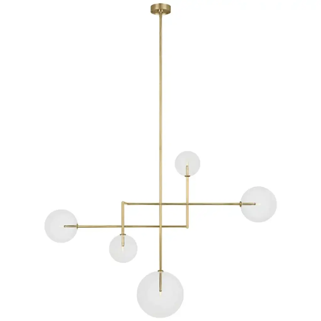 The Linnea LED Chandelier from Visual Comfort Signature represents Aerin's interpretation of orbital movement. Steel arms extend at varying lengths in a calculated asymmetric pattern, each terminating in a luminous glass bulb. These transparent spheres appear to float within the space, creating multiple planes of illumination. This fixture particularly shines in grand foyers, above modernist dining tables, or in architectural stairwells where its dimensional quality can be fully appreciated.
