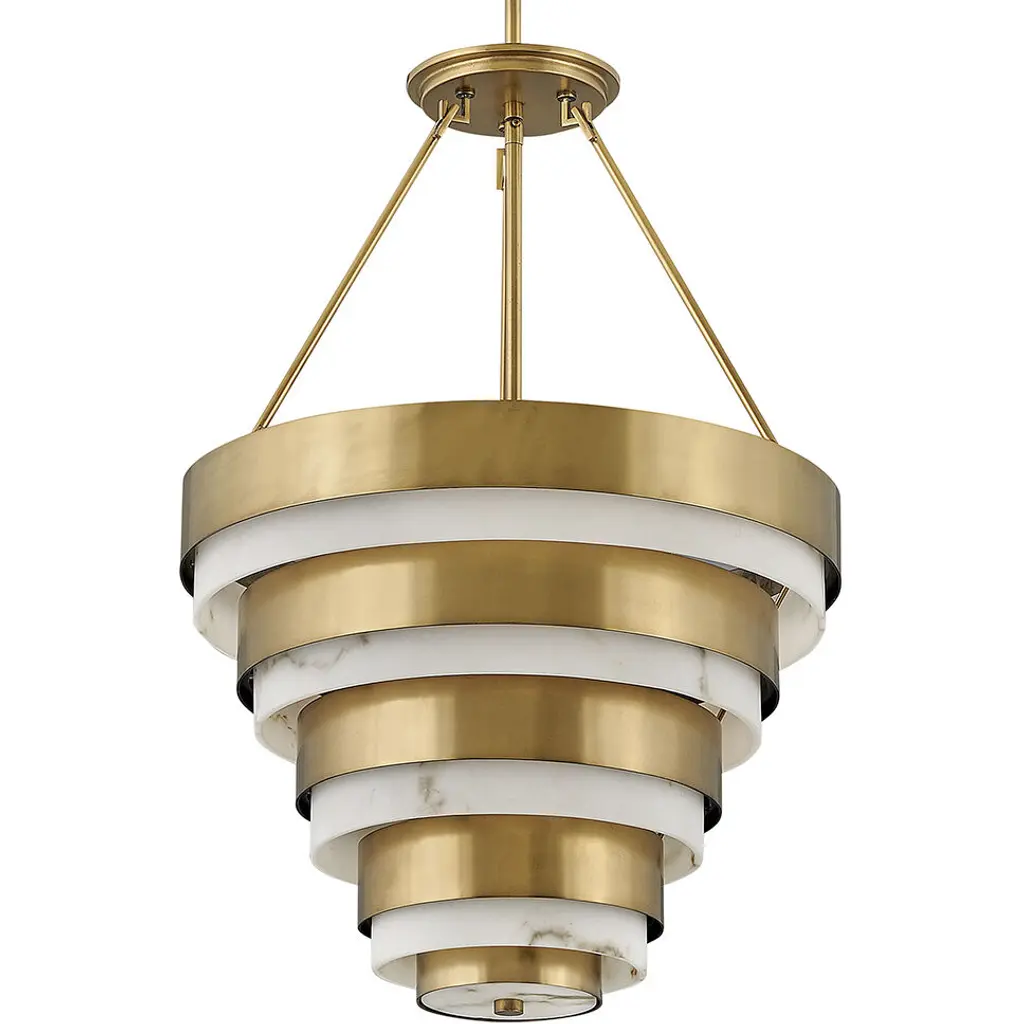 The Lisa McDennon Collection offers a striking mix of edgy, sculptural silhouettes that incorporate modern, organic elements and luxe materials, brought to life by her innovative and original point of view. Breathing inspiration drawn from the classic style of Art Deco, Echelon, from our Lisa McDennon Collection, is a multi-tier style in a gleaming Heritage Brass finish. Through her global travels, Lisa McDennon pulls captivating style and trends and incorporates them into her product designs.