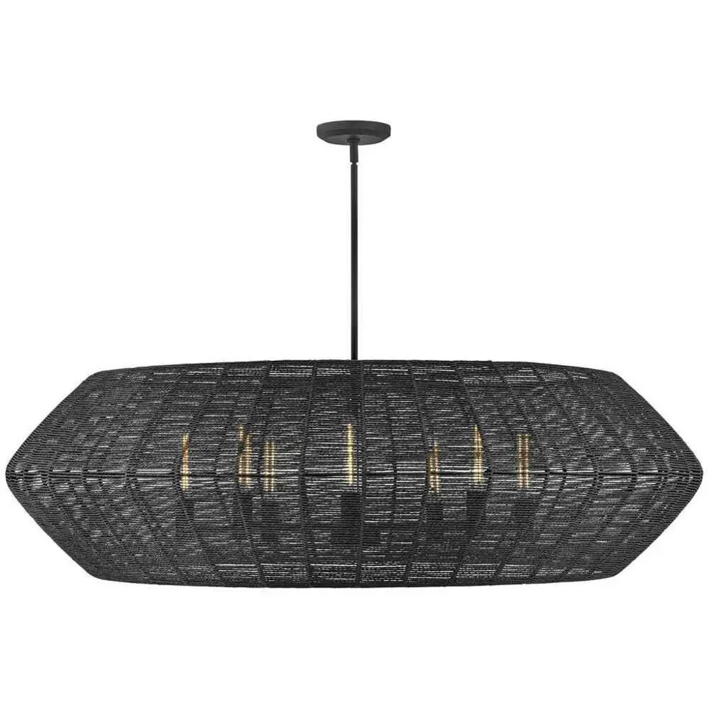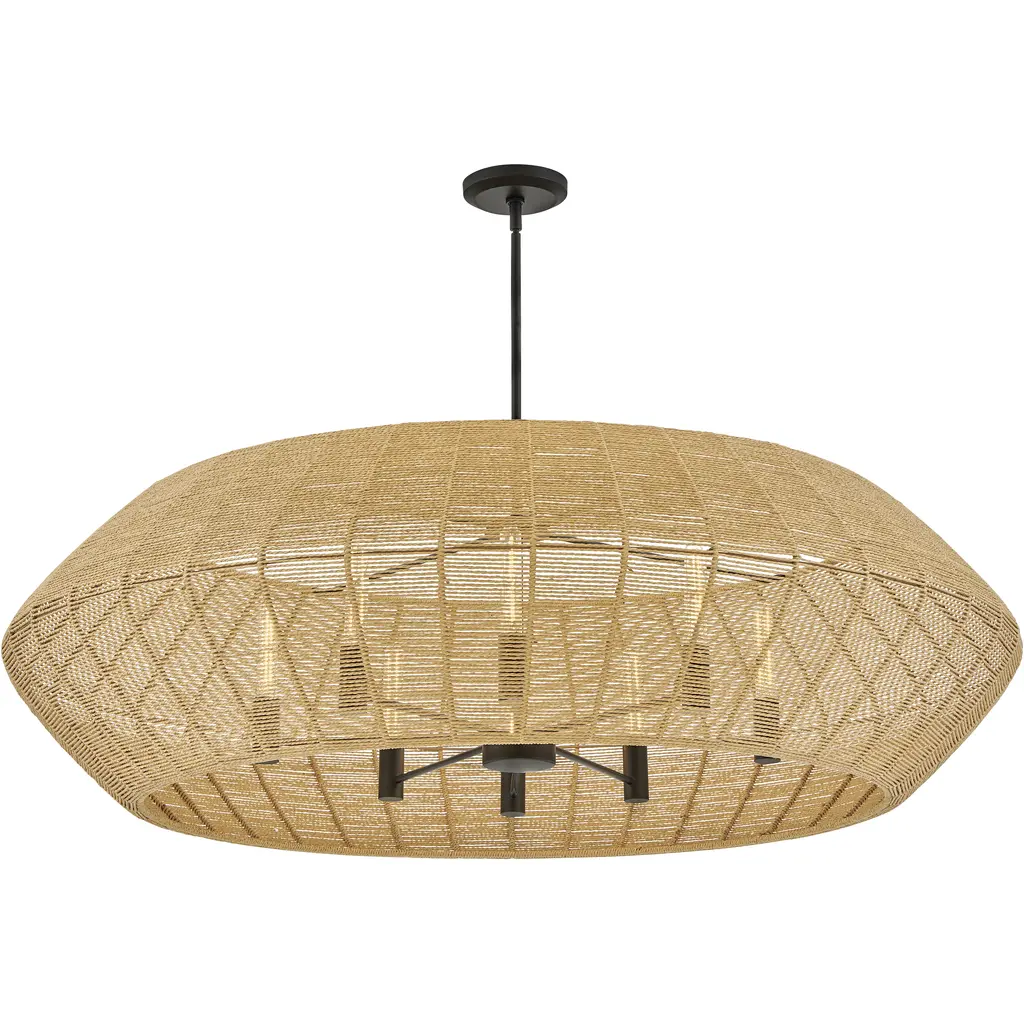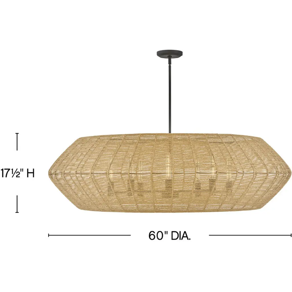 Lisa Mcdennon Luca 8 Light 60 Inch Black / Camel Rattan Chandelier Ceiling Light, Drum