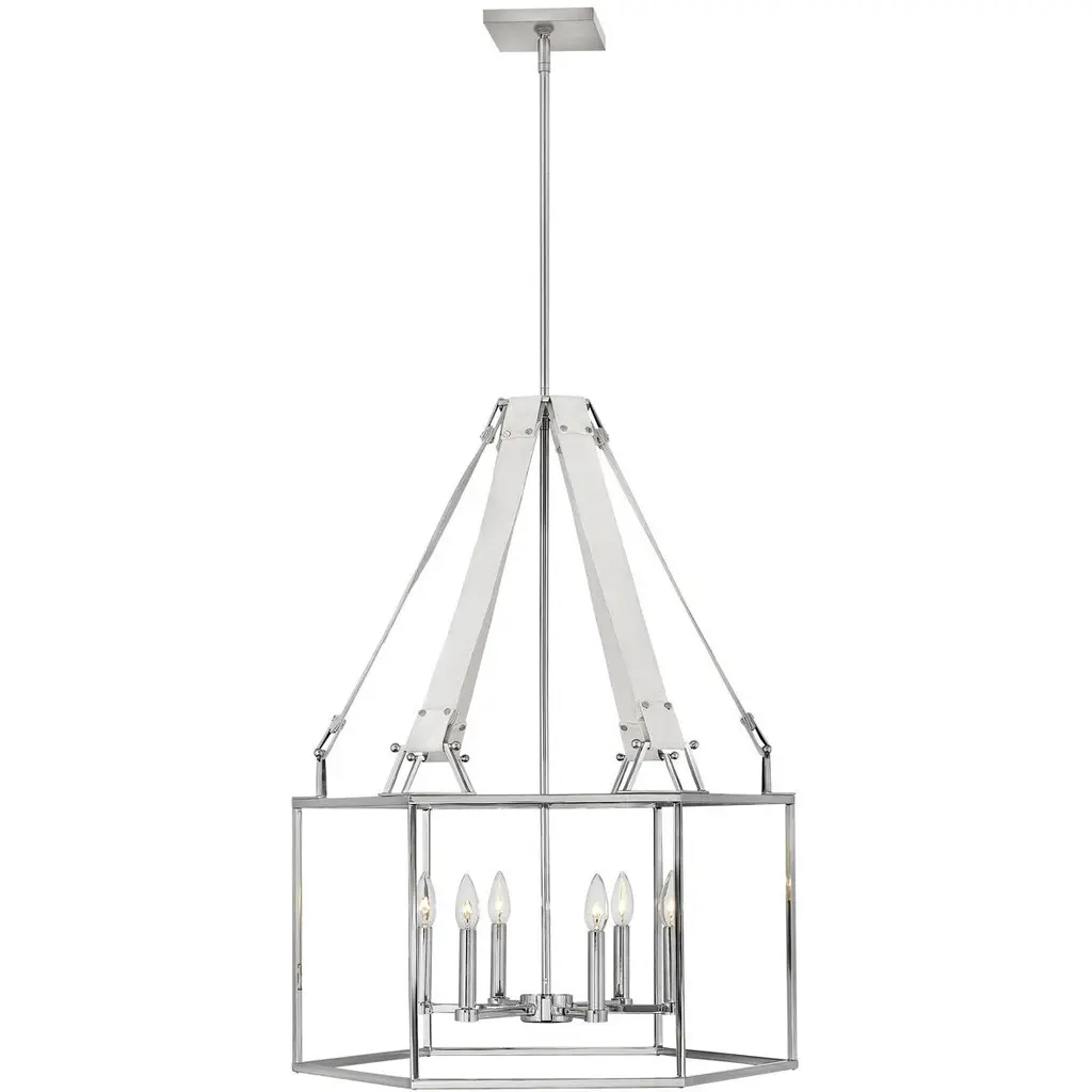The Lisa McDennon Collection offers a striking mix of edgy, sculptural silhouettes that incorporate modern, organic elements and luxe materials, brought to life by her innovative and original point of view. Did someone say chic? Monroe has it all: a unique hexagonal cage with crisp welded corners that immediately translates a refined and cultured presence. Suede straps add a bohemian coolness to the mix. Carefully selected color combinations of rich metal finishes and warm natural elements create the perfect uptown/downtown fusion. Monroe is the ultimate transitional lighting solution.