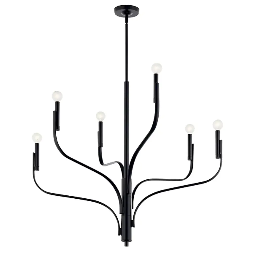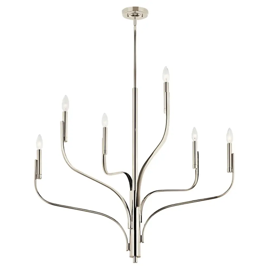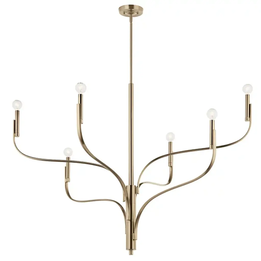 The Livadia Chandelier from Kichler draws its inspiration from the intricate beauty of branching plants, infusing traditional design with the vitality of nature. Its sculpted silhouette gracefully ascends, culminating in candlesticks that bloom like fresh buds. The arms converge at the central column, resting gently against the body to produce a tiered effect. This design's subtle asymmetry offers a dynamic visual experience, changing perspectives as one moves around the room, ensuring a unique view from every angle for both you and your guests.