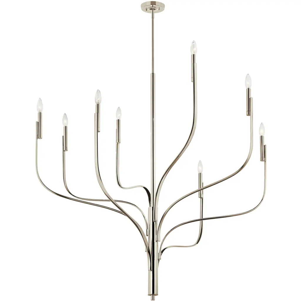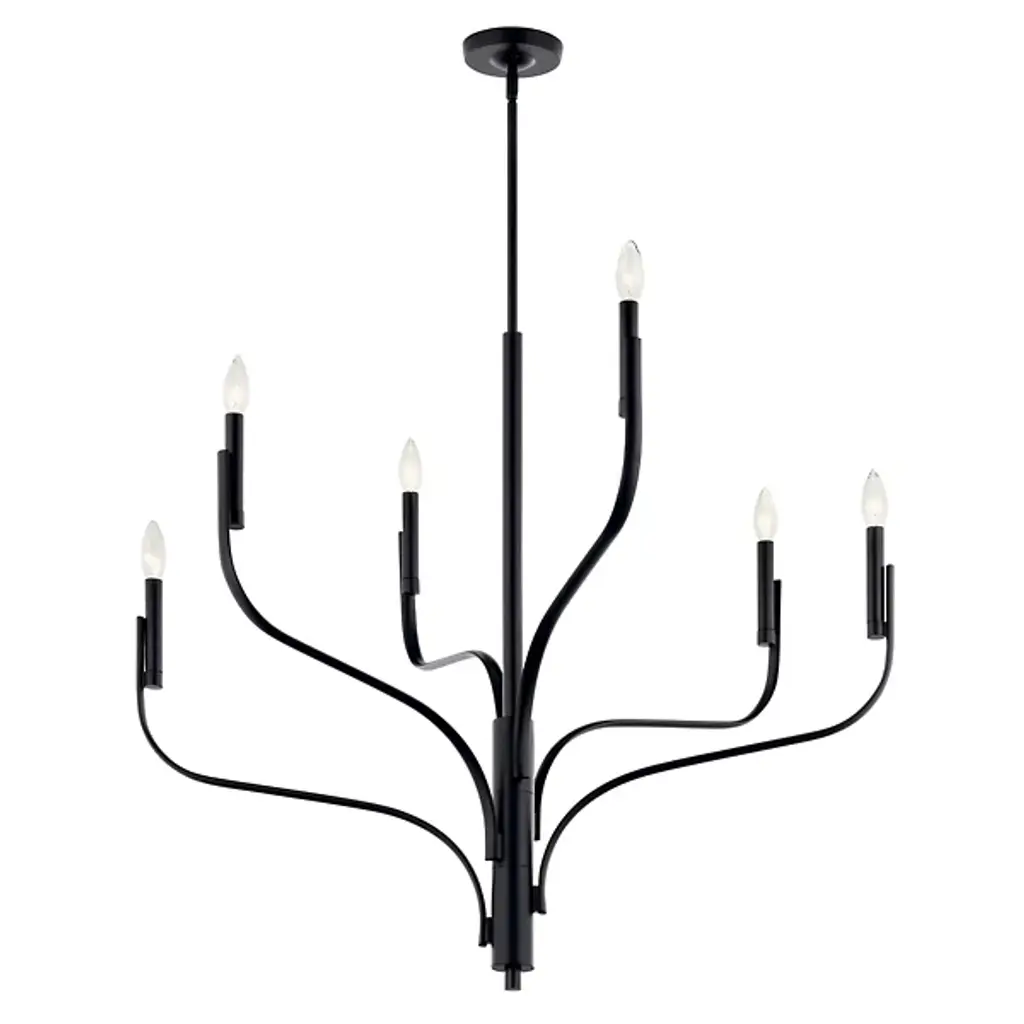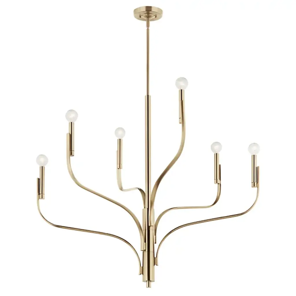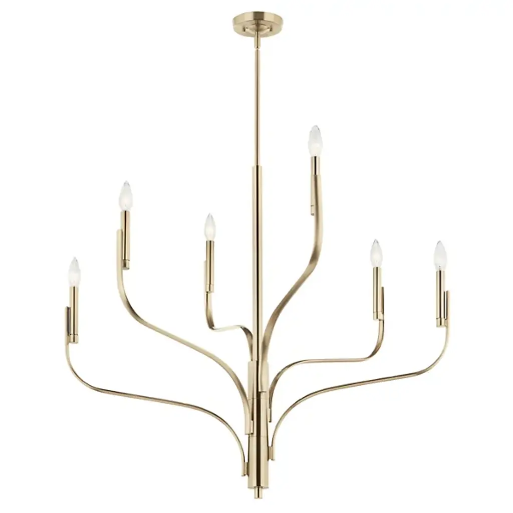 The Livadia Chandelier from Kichler draws its inspiration from the intricate beauty of branching plants, infusing traditional design with the vitality of nature. Its sculpted silhouette gracefully ascends, culminating in candlesticks that bloom like fresh buds. The arms converge at the central column, resting gently against the body to produce a tiered effect. This design's subtle asymmetry offers a dynamic visual experience, changing perspectives as one moves around the room, ensuring a unique view from every angle for both you and your guests.