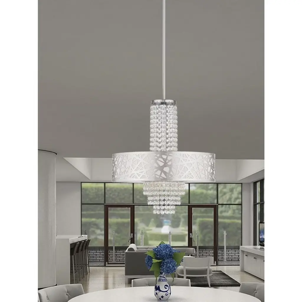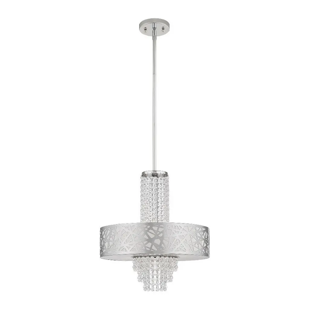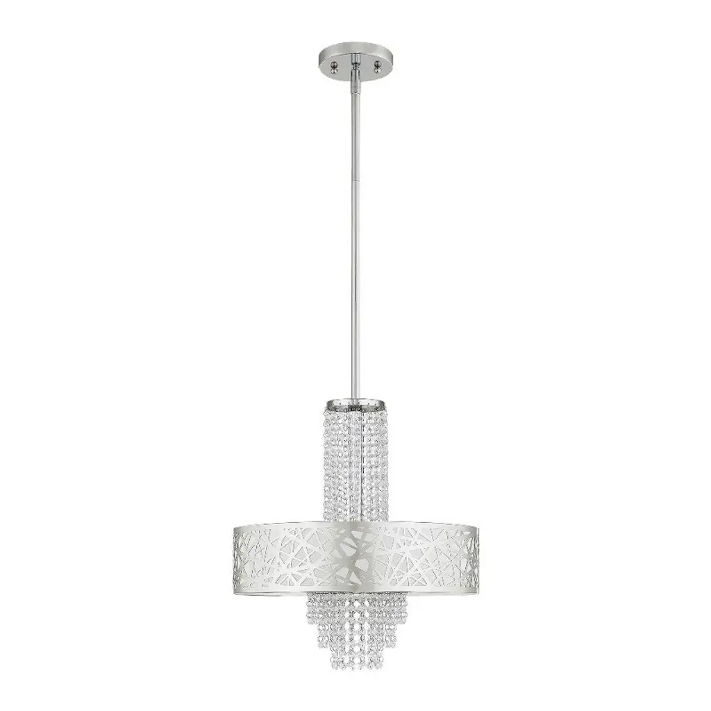 Collection: Allendale, Material: Steel, Finish Color: Polished Chrome, Width: 18", Height: 21.75", Hanging Method: Stem, Lamping Type: Incandescent, Number Of Bulbs: 4, Wattage: 240 Watts, Moisture Rating: Damp Rated Desc: , Material: Steel, Finish Color: Polished Chrome, Width: 18", Height: 21.75", Hanging Method: Stem, Lamping Type: Incandescent, Number Of Bulbs: 4, Wattage: 240 Watts, Moisture Rating: Damp Rated