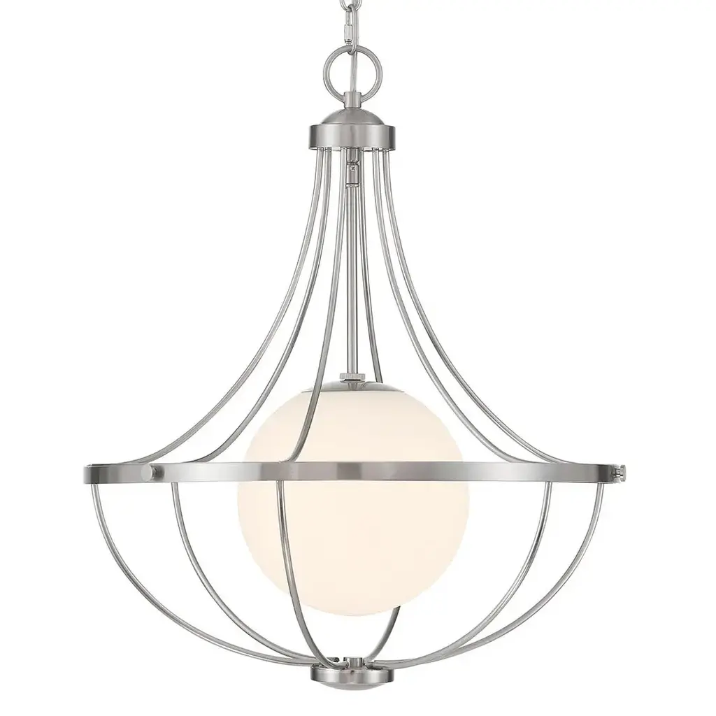 Collection: Arabella, Material: Steel, Finish Color: Polished Chrome, Width: 22", Height: 28.25", Hanging Method: Chain, Chain Length: 72", Lamping Type: Incandescent, Number Of Bulbs: 5, Wattage: 300 Watts, Moisture Rating: Dry Rated, Desc: Our Arabella collection five light transitional orb features a black sphere with delicate draping crystals. Together, the metal and crystal create a balance between modern and classical. This clever design combination is the model of versatility and perfect for an elegant dining room or use in a casual kitchen setting.,