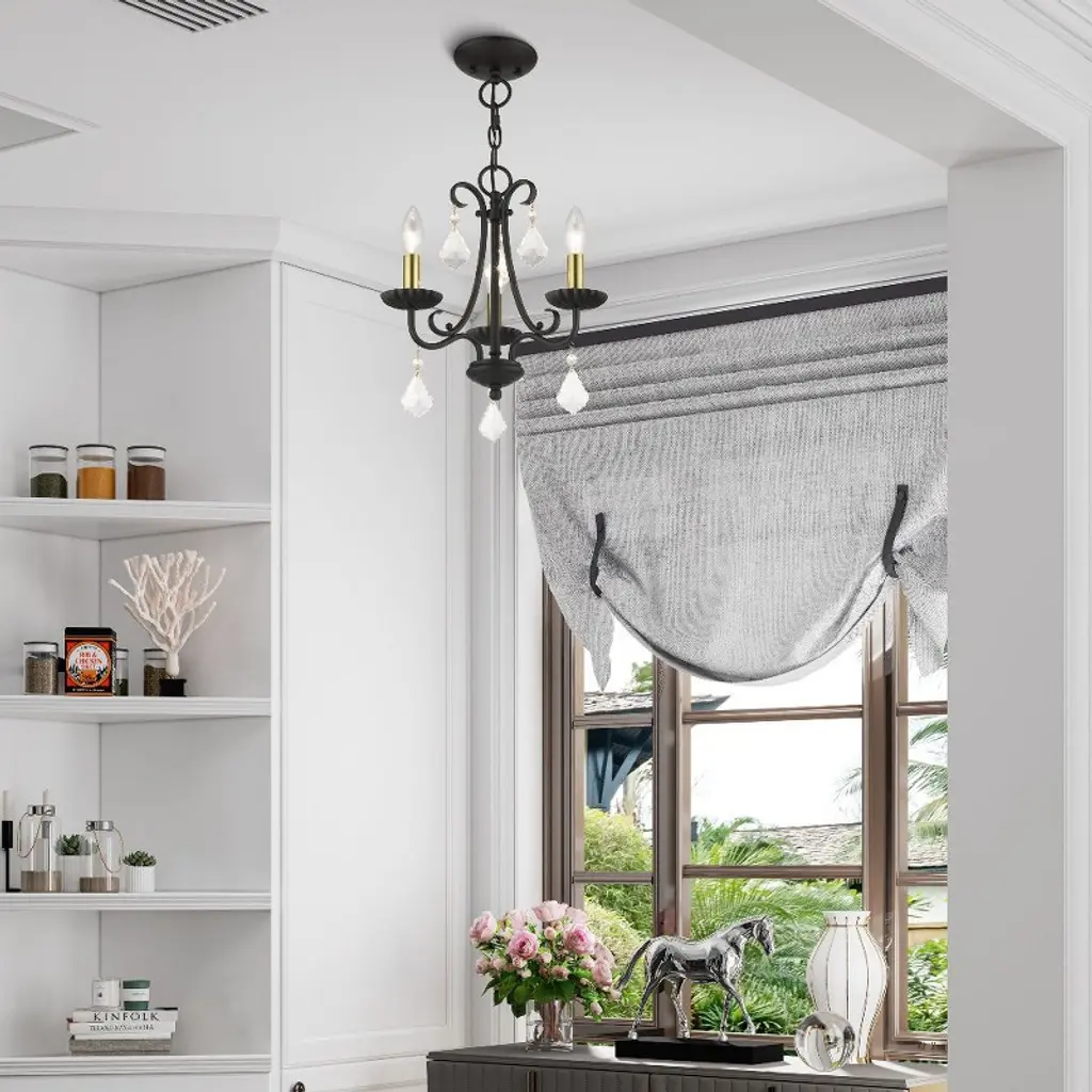 Collection: Daphne, Material: Steel, Finish Color: Black/Antique Brass, Width: 13.875", Height: 14.88", Hanging Method: Chain, Chain Length: 36", Lamping Type: Incandescent, Number Of Bulbs: 3, Wattage: 180 Watts, Moisture Rating: Dry Rated, Desc: Teardrop crystals add beauty and sophistication to the traditional styling of the Daphne collection. The subtle sparkle delivers bling in an understated way, nicely complementing whatever room d�cor you may have.,