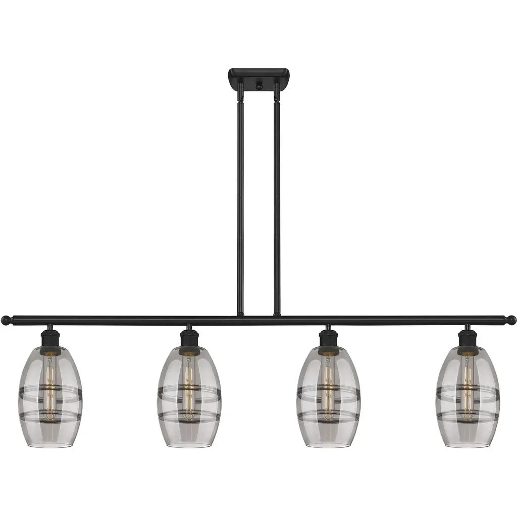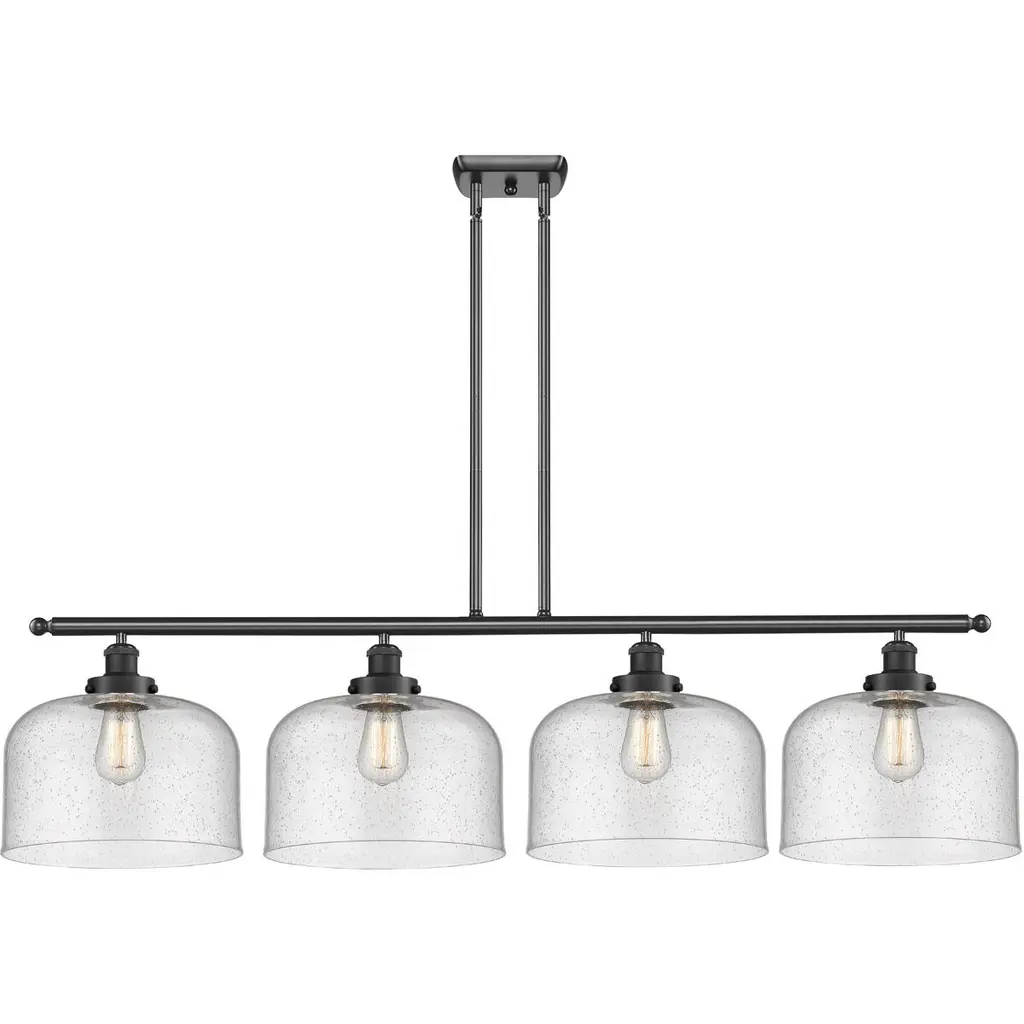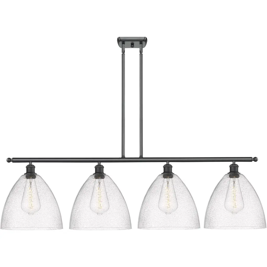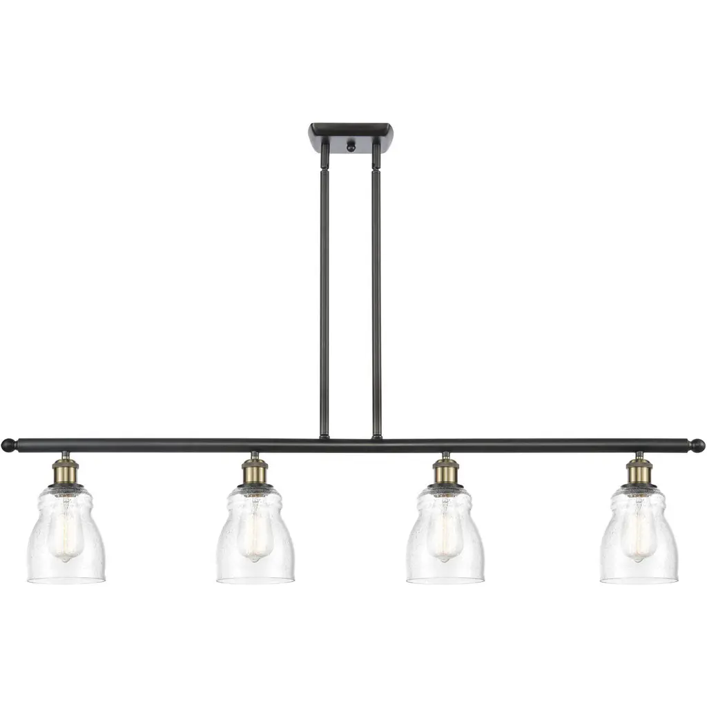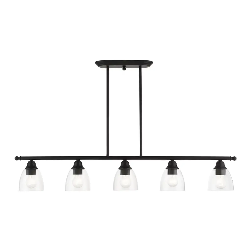 Collection: Glendon, Material: Steel, Finish Color: Black, Width: 8.25", Height: 18.75", Length: 45", Hanging Method: Stem, Lamping Type: Incandescent, Number Of Bulbs: 4, Wattage: 240 Watts, Moisture Rating: Dry Rated, Desc: This four light linear chandelier from the Glendon collection has understated elegance. It features minimal details, clear curved glass with an antique brass finish and can fit into any decor.,