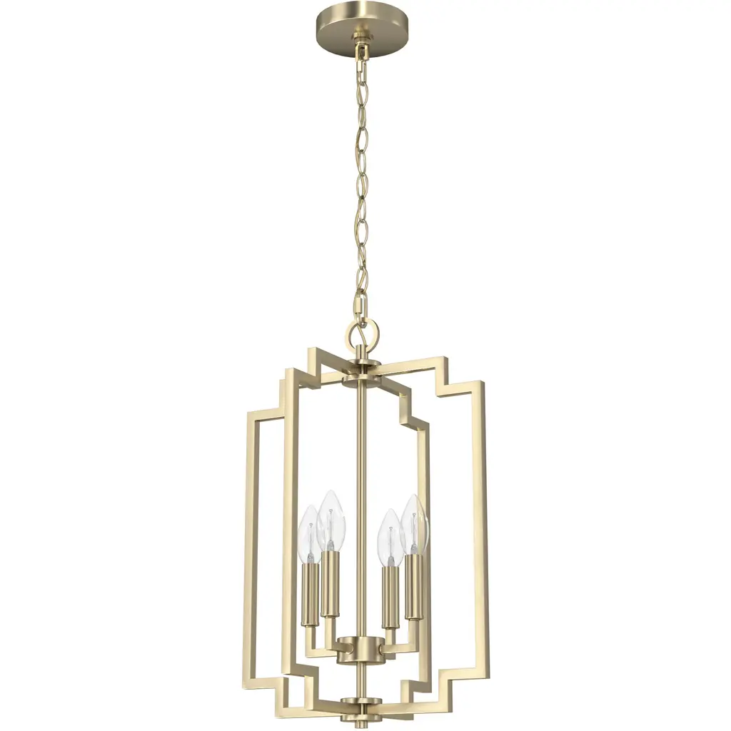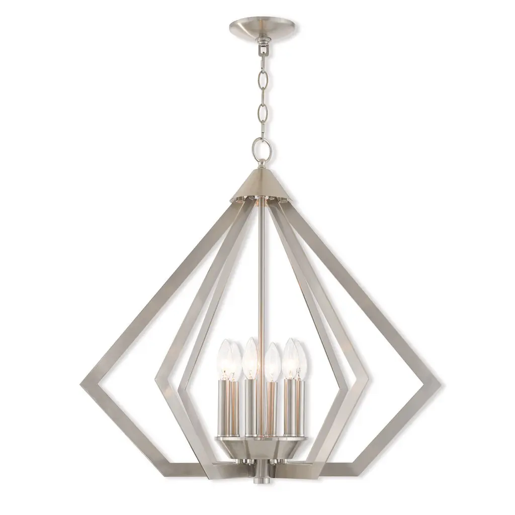 Collection: Prism, Material: Steel, Finish Color: Antique Brass, Width: 20", Height: 19.5", Hanging Method: Chain, Chain Length: 72", Lamping Type: Incandescent, Number Of Bulbs: 5, Wattage: 300 Watts, Moisture Rating: Dry Rated, Desc: Influenced by modern industrial style, our Prism antique brass finish pendant light has a striking triangular shape. Sleek and contemporary, it's ideal for modern, contemporary or industrial style interiors.,