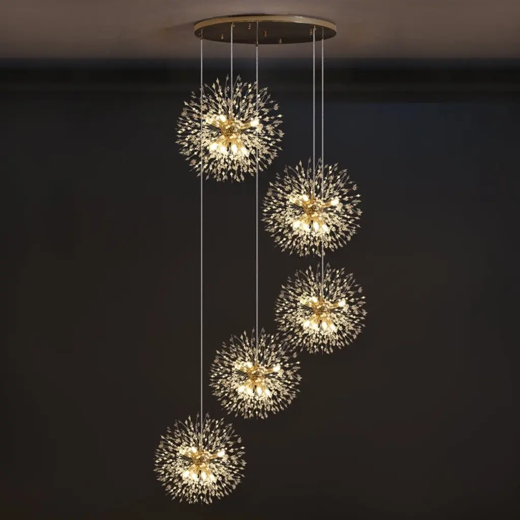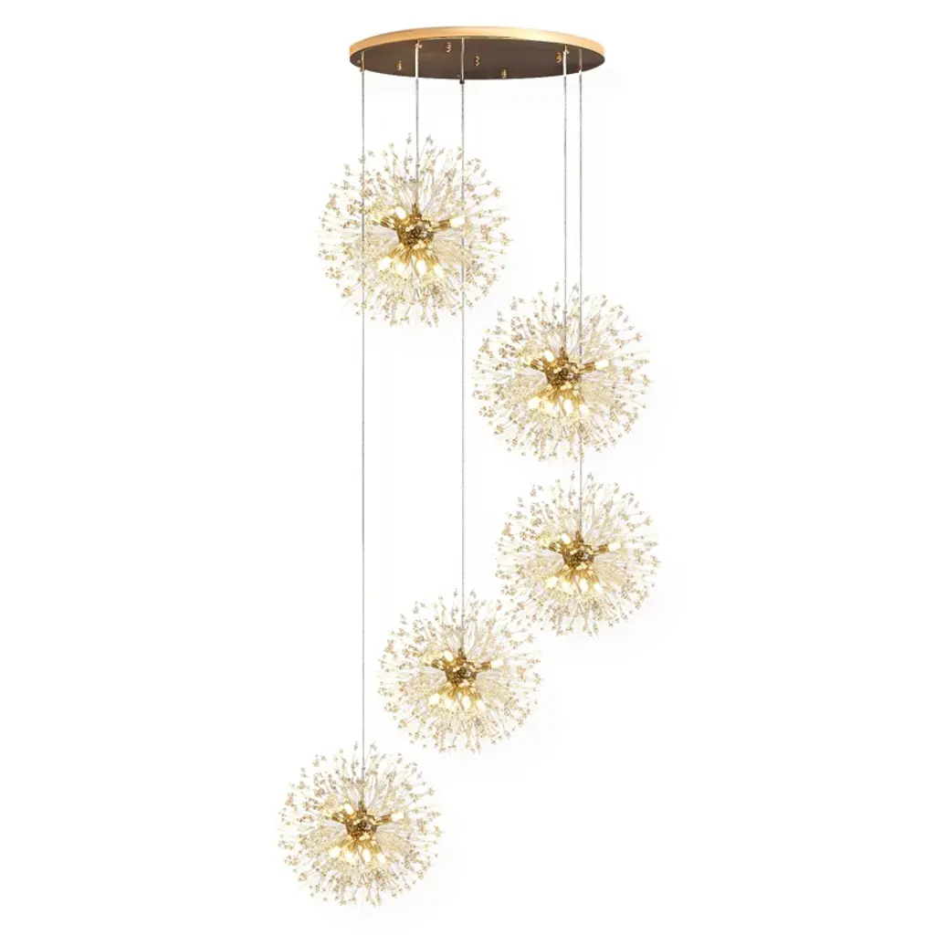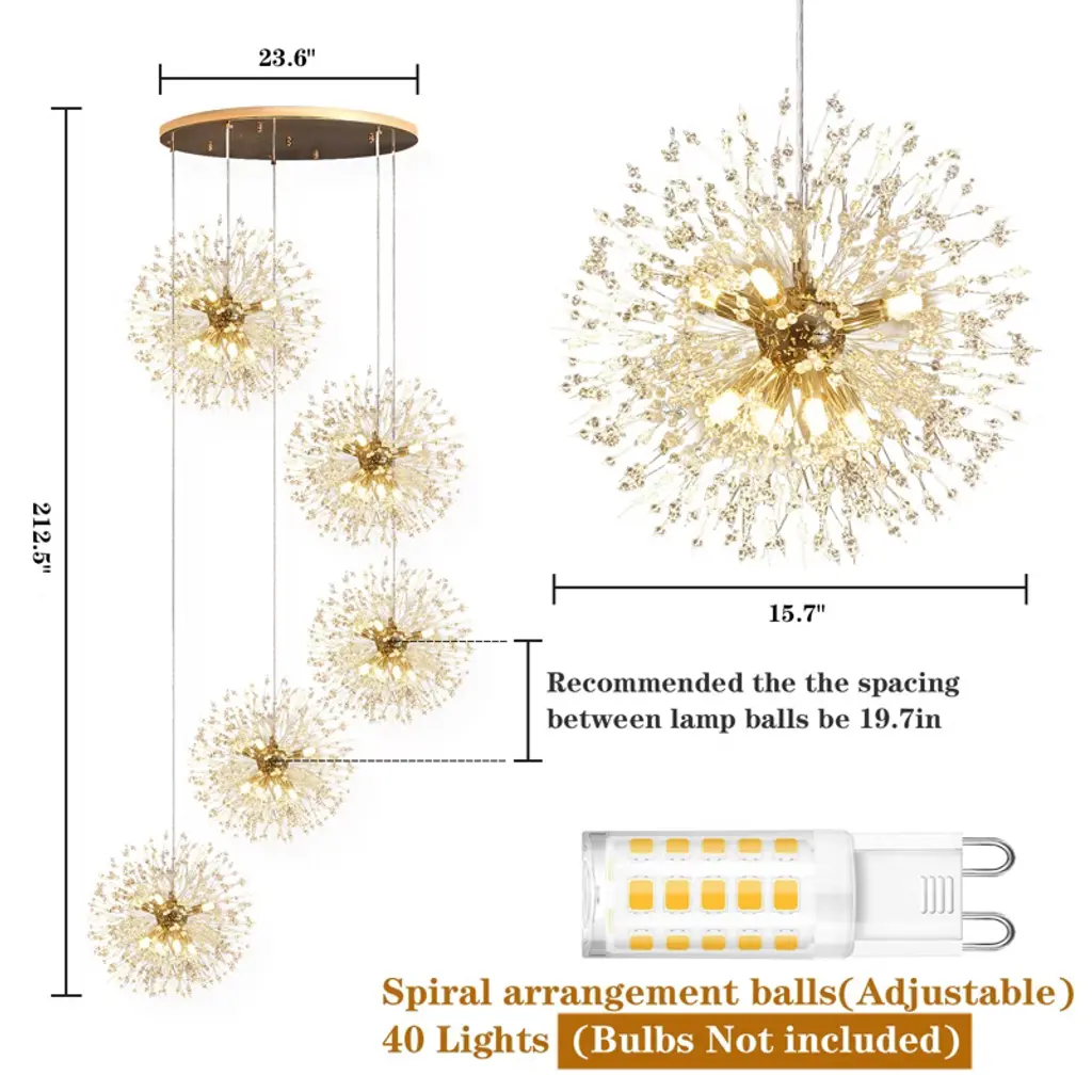 Llhzsy 40-lights Modern Glam Globe Dandelion Crystal Chandelier - 5 Globes Dandelion- Gold