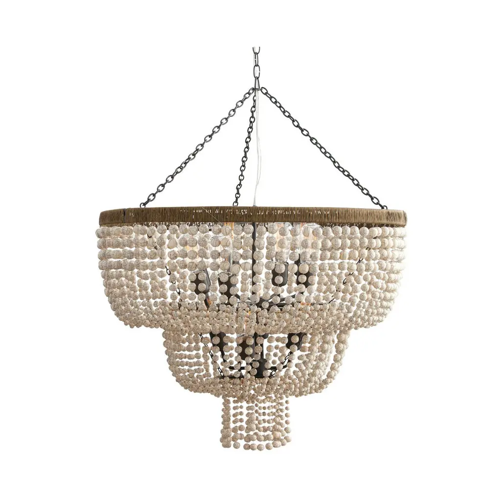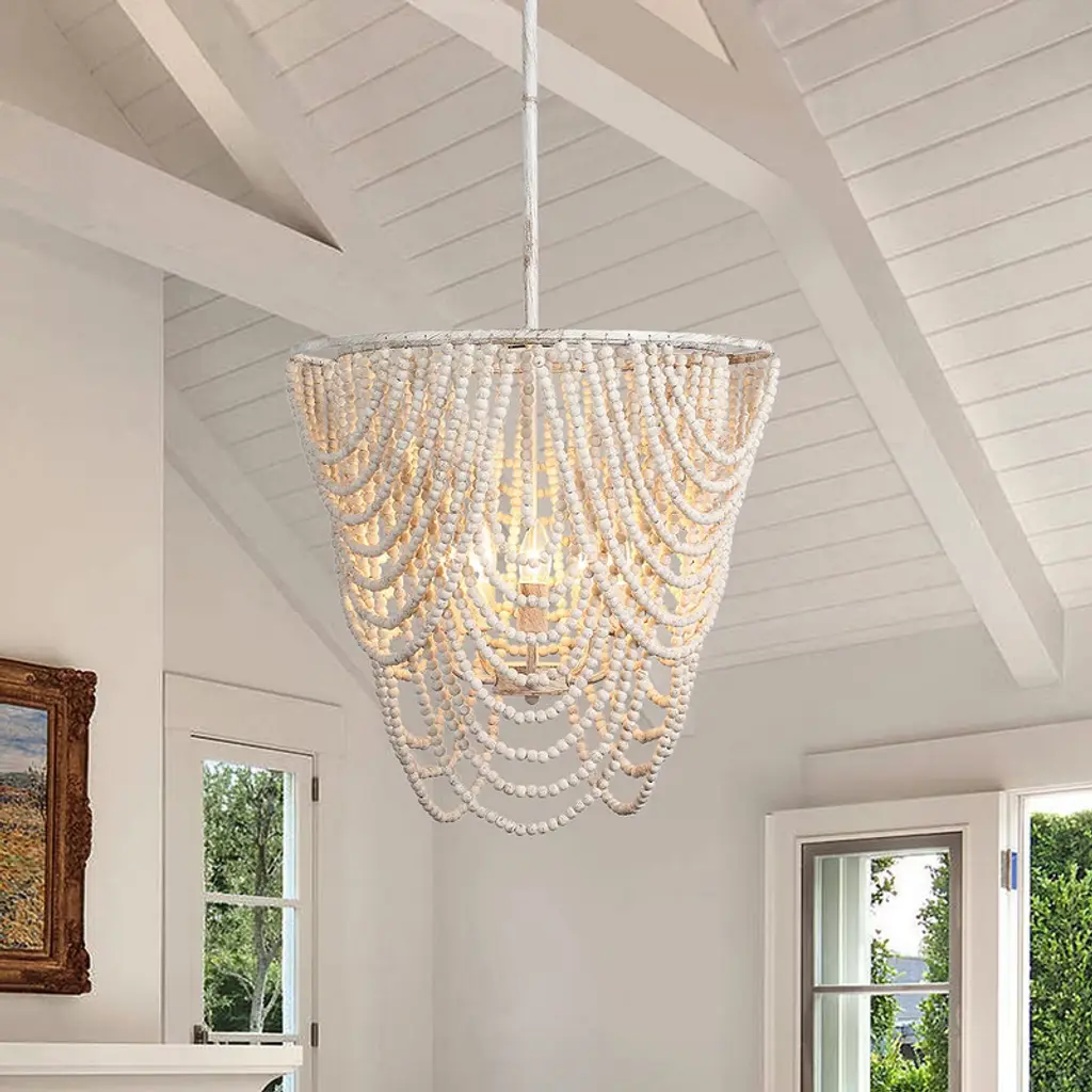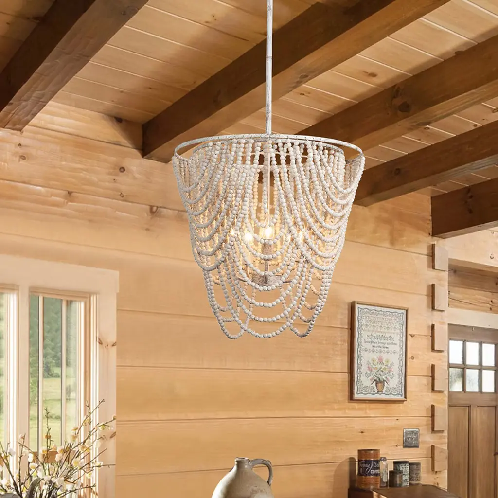 Llhzsy 5-light Romantic Natural Wood Beaded Chandelier - 19 11/16"