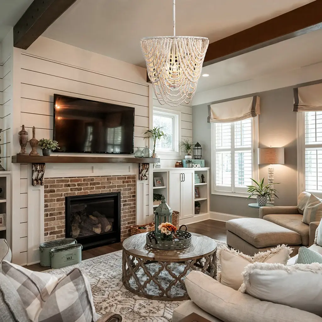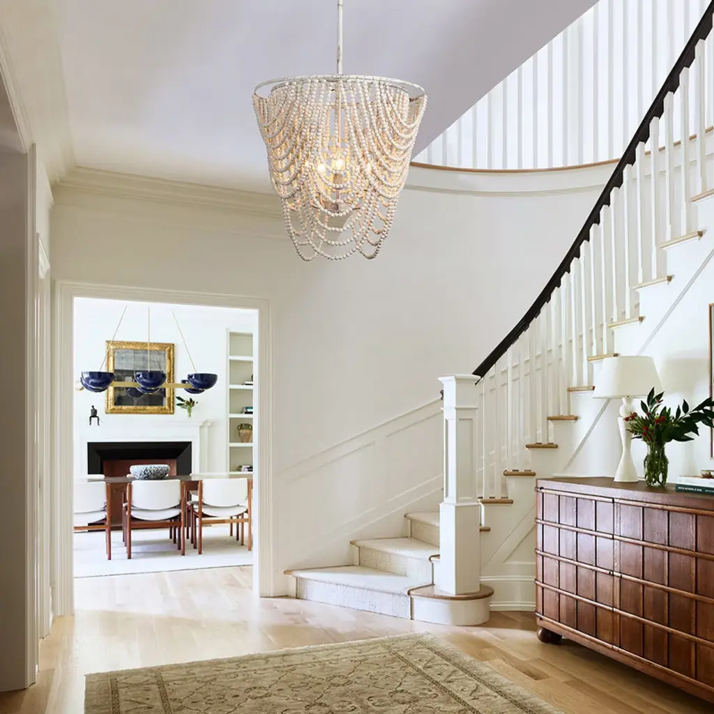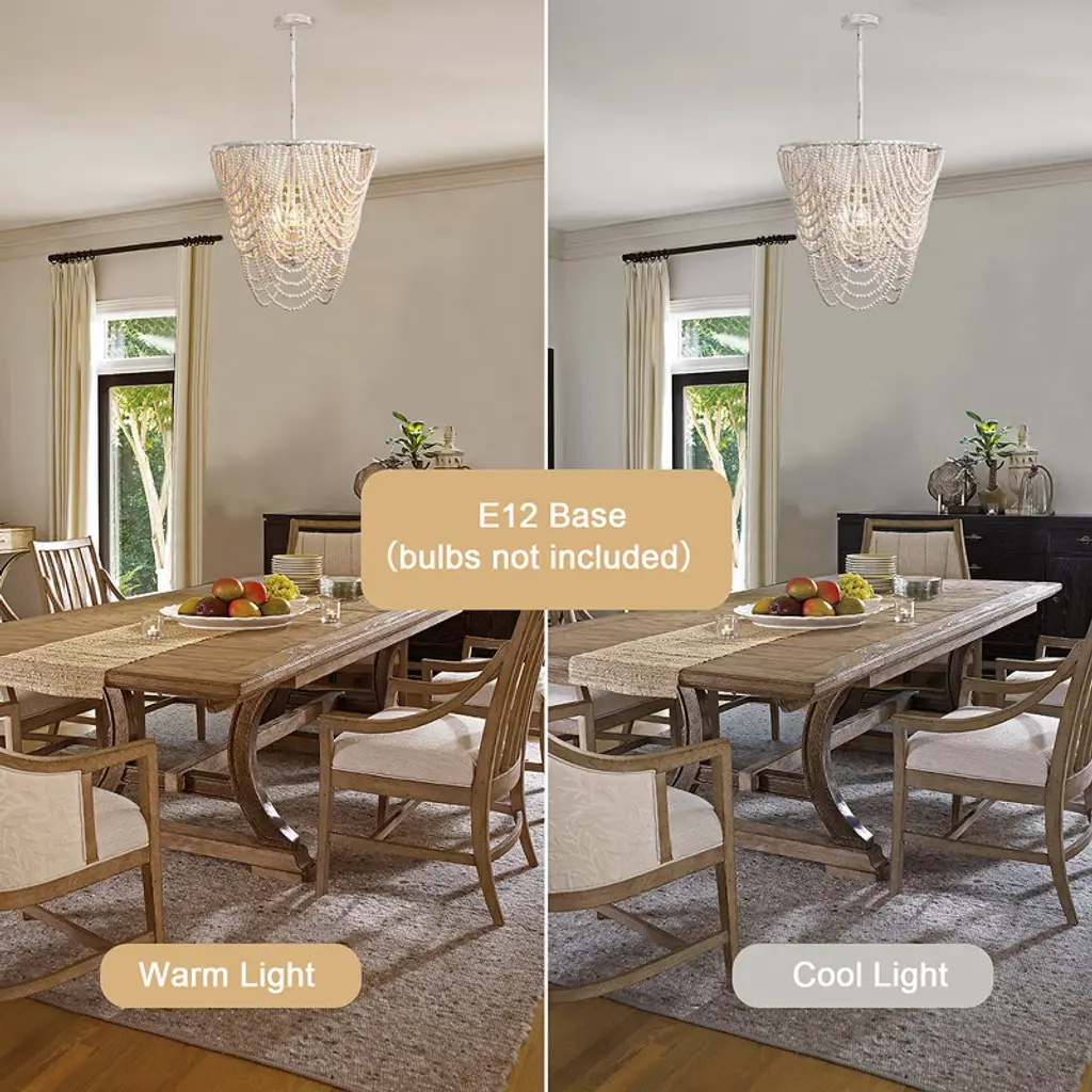 Llhzsy 5-light Romantic Natural Wood Beaded Chandelier - 19 11/16"