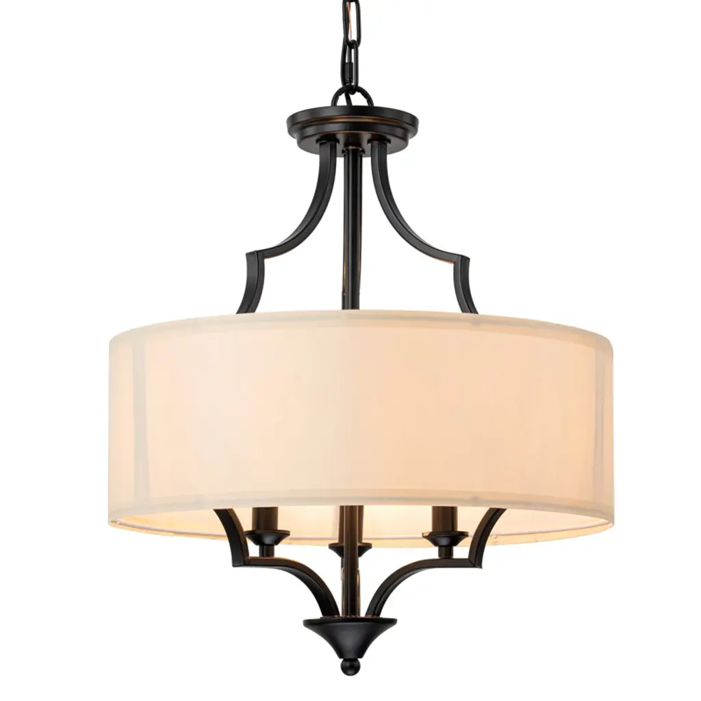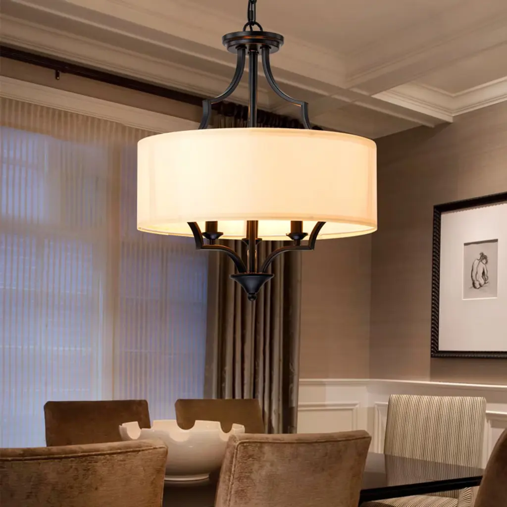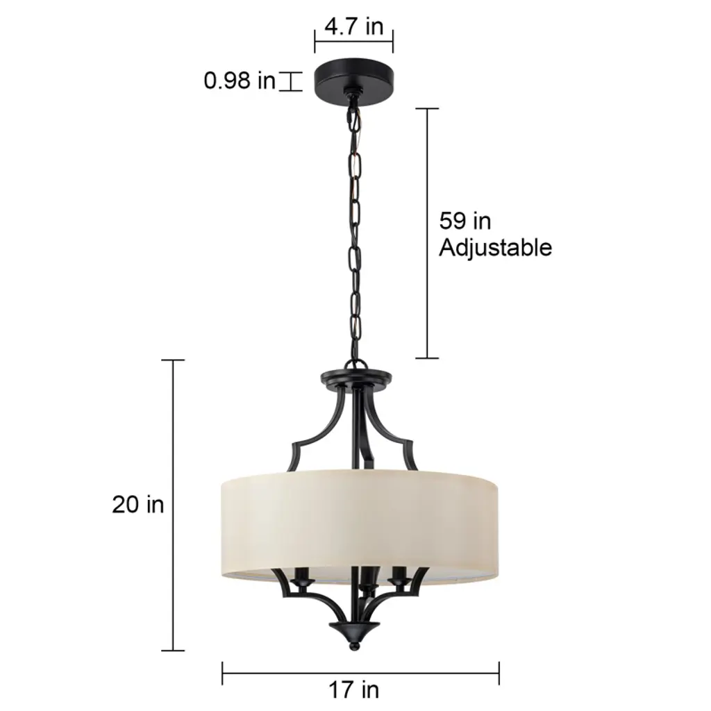 Llhzsy Modern 3 - Light Candle Style Drum Shaded Black Chandelier-16 7/8"