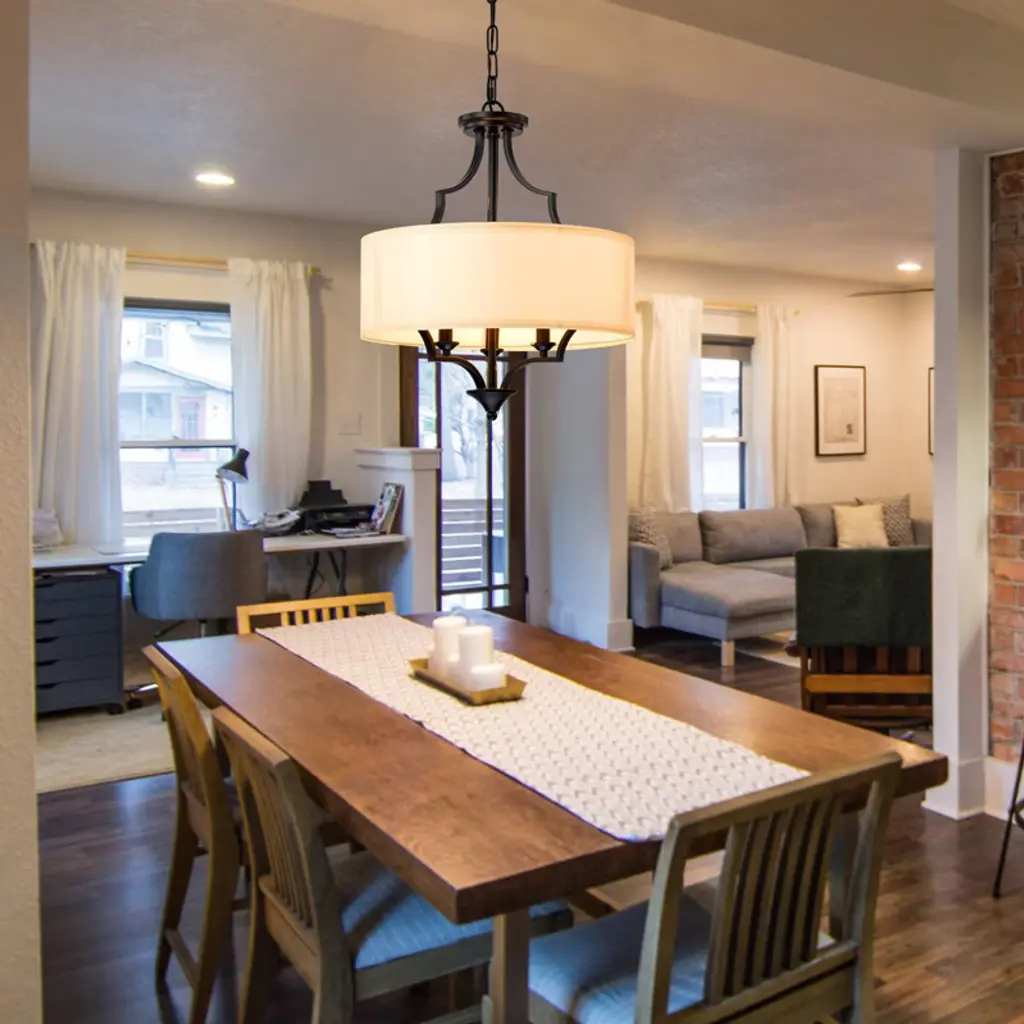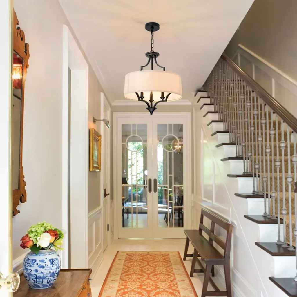 Add a touch of modern elegance to your home with this exquisite 3-light candle-style chandelier. Featuring a sleek curved metal stem and elegant finials, it is beautifully complemented by round white drum fabric shades. This combination creates a warm and inviting ambiance that enhances any room's aesthetic. Whether placed in dining rooms, kitchen islands, foyers, living rooms, entryways, hallways, or stairwells, this gold-finished metal chandelier will bring timeless beauty to your home. Perfect for creating a refined, cozy atmosphere, this chandelier blends style and function seamlessly.