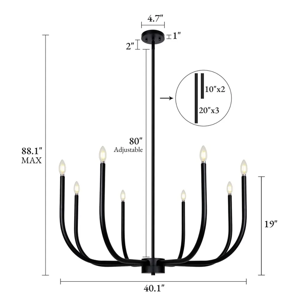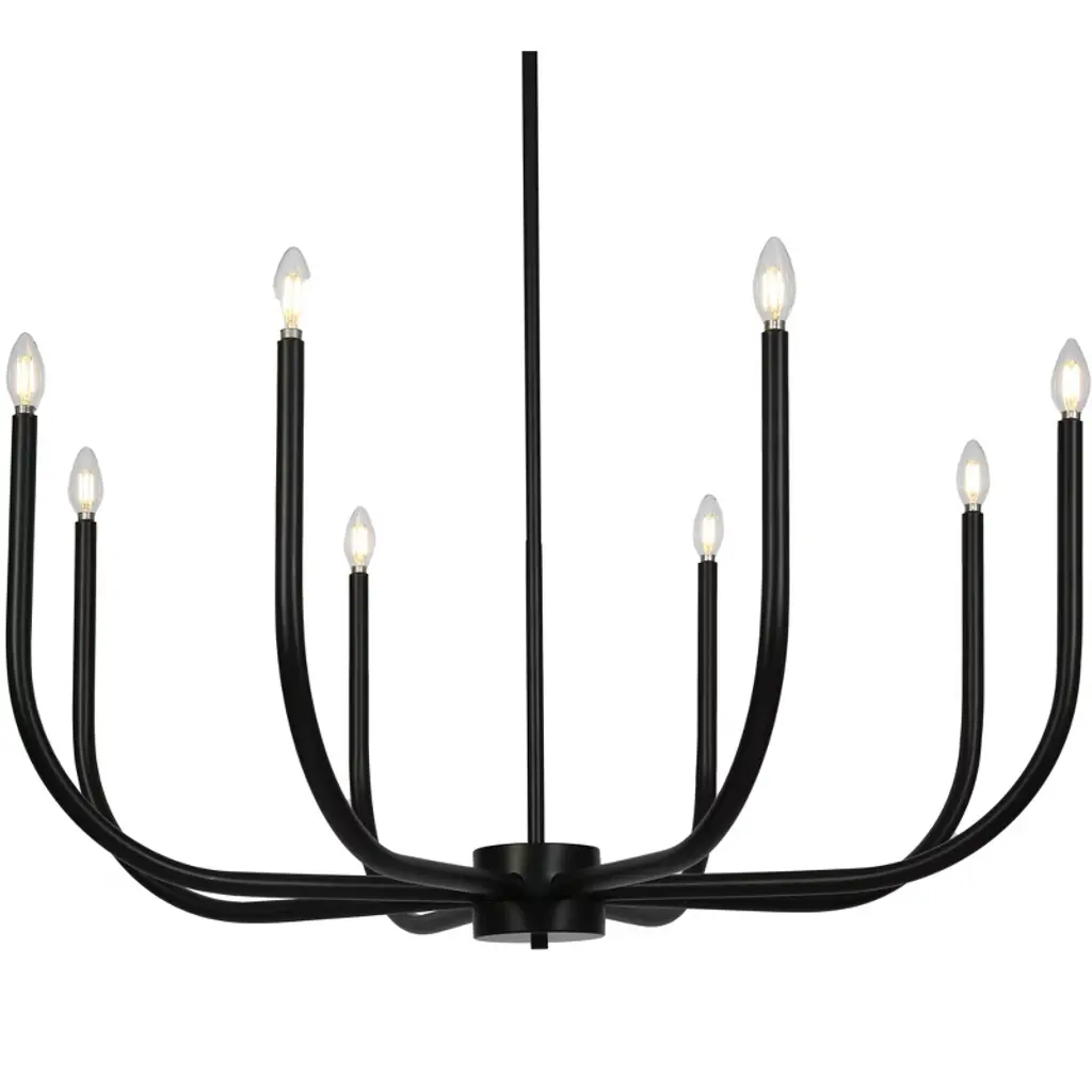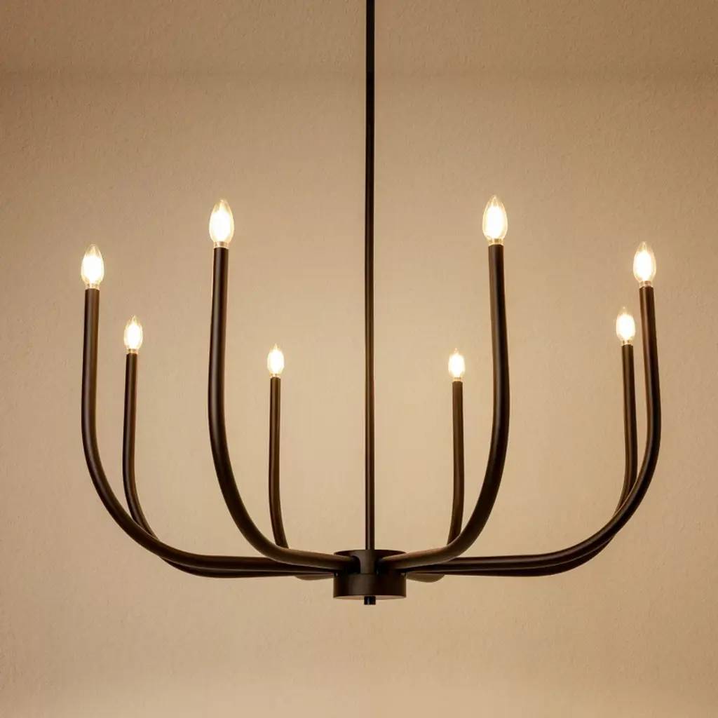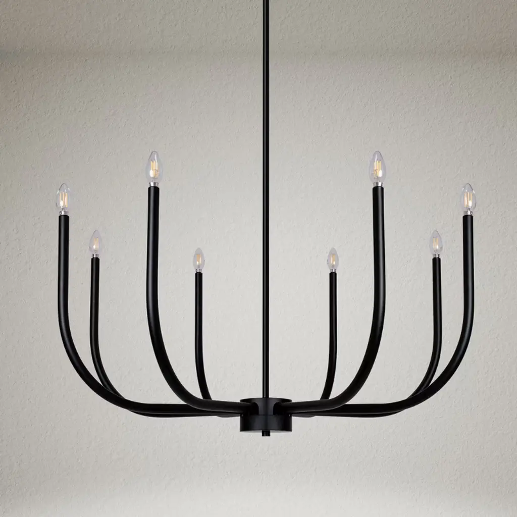 Add sculptural simplicity with this 8-light chandelier from LNC Home. Curved black arms radiate gracefully from a central hub, forming an open, airy design that complements both modern and transitional spaces. At 39.4" wide by 20.5" high with an adjustable downrod (23.5" to 83"), it¡¯s well-suited for dining rooms, vaulted ceilings, or open living areas. From the Bohonicist Collection, this chandelier reduces design to its purest form. Sleek and timeless, it offers bold style without overwhelming your space. Bulbs not included.