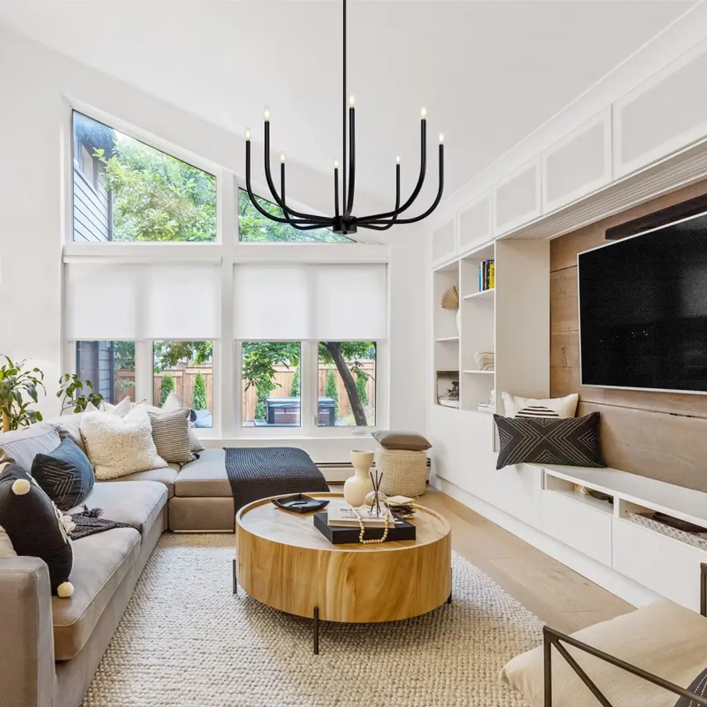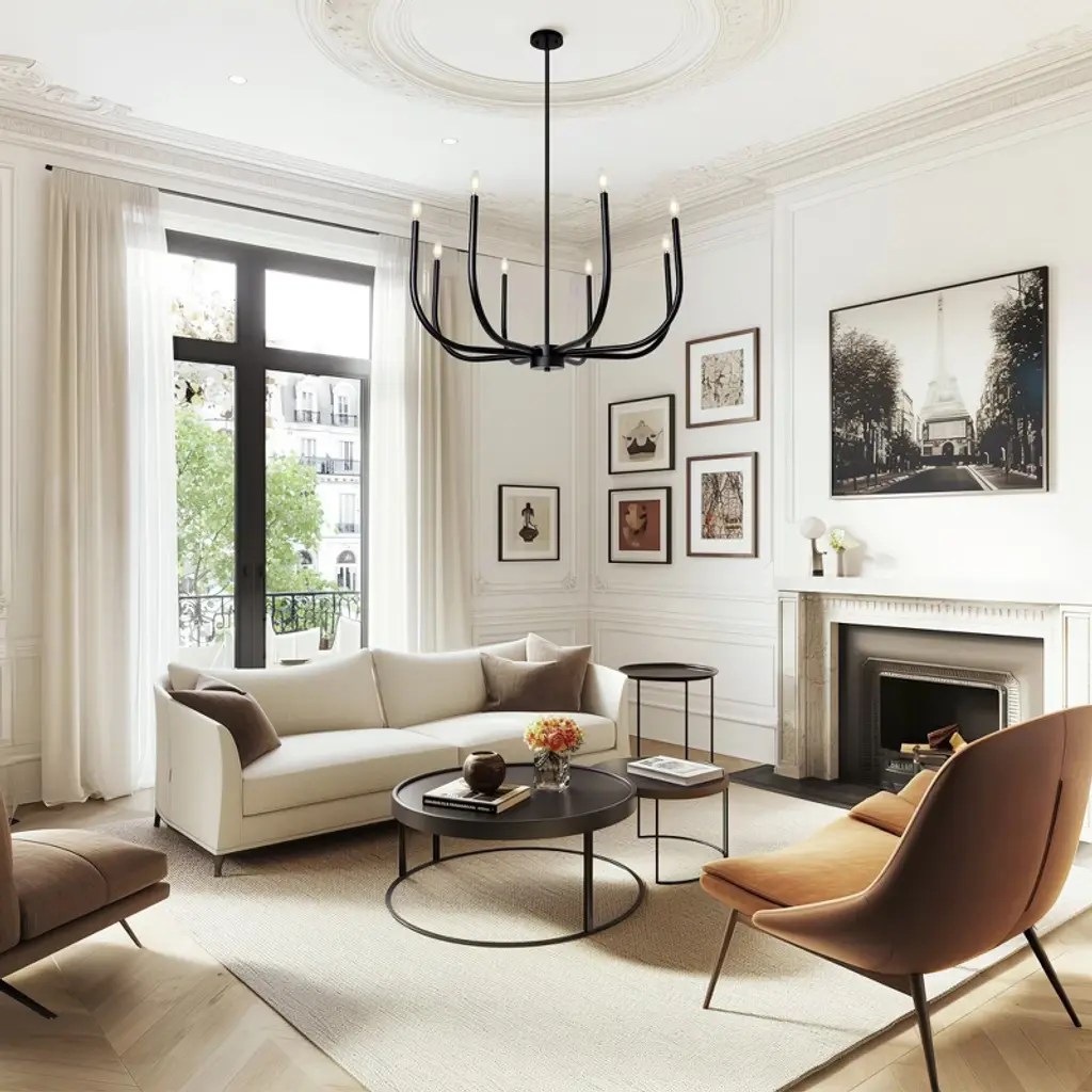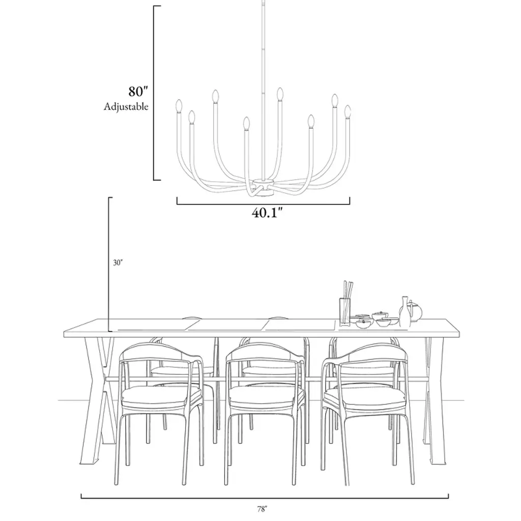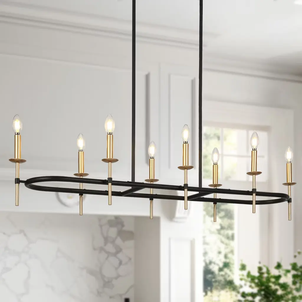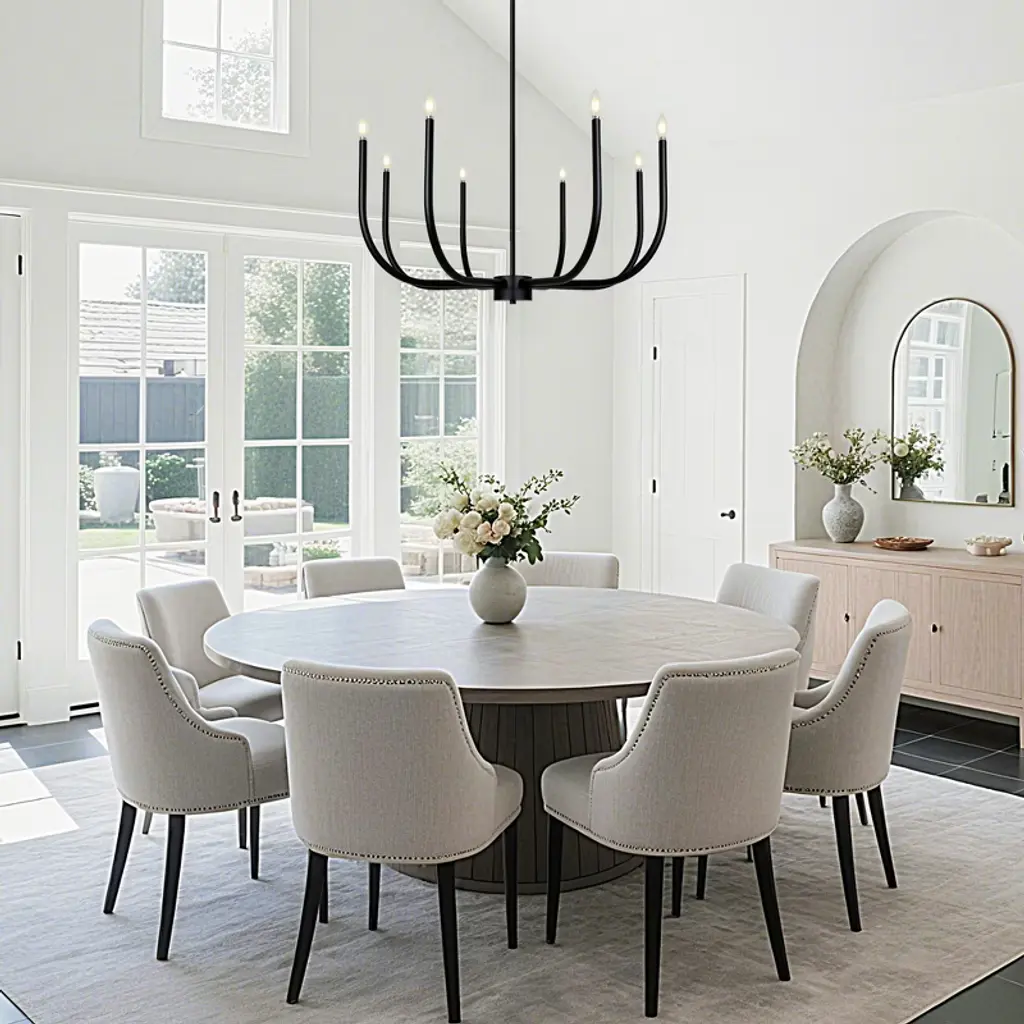 Add sculptural simplicity with this 8-light chandelier from LNC Home. Curved black arms radiate gracefully from a central hub, forming an open, airy design that complements both modern and transitional spaces. At 39.4" wide by 20.5" high with an adjustable downrod (23.5" to 83"), it¡¯s well-suited for dining rooms, vaulted ceilings, or open living areas. From the Bohonicist Collection, this chandelier reduces design to its purest form. Sleek and timeless, it offers bold style without overwhelming your space. Bulbs not included.