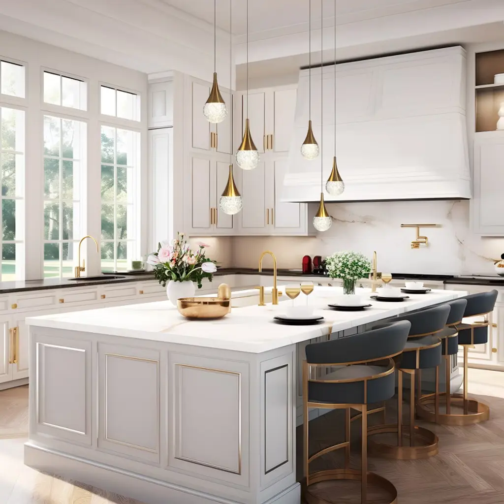The LNC Dandelion 3-Light Polished Gold Chandelier boasts a sophisticated and contemporary teardrop-shaped design, adding a touch of elegance to any room. The streamlined water drop shape is matched with the clear and delicate inner carved glass, which is exquisite and elegant, and also looks like a fairy cuteness. It is a beautiful space decoration. Equipped with an integrated LED light source, the chandelier delivers efficient and long-lasting illumination.