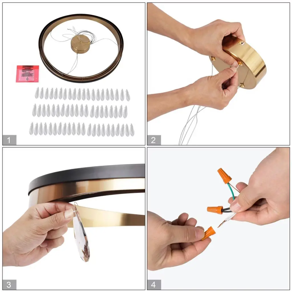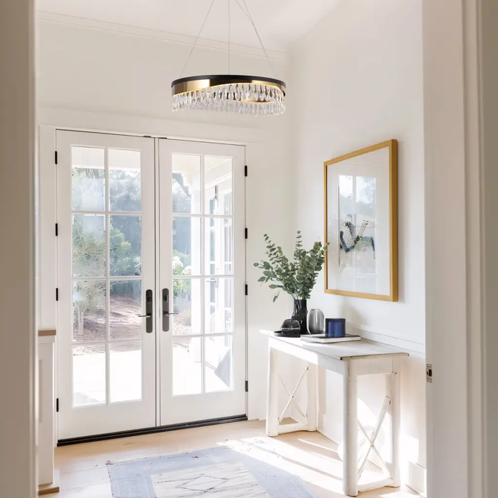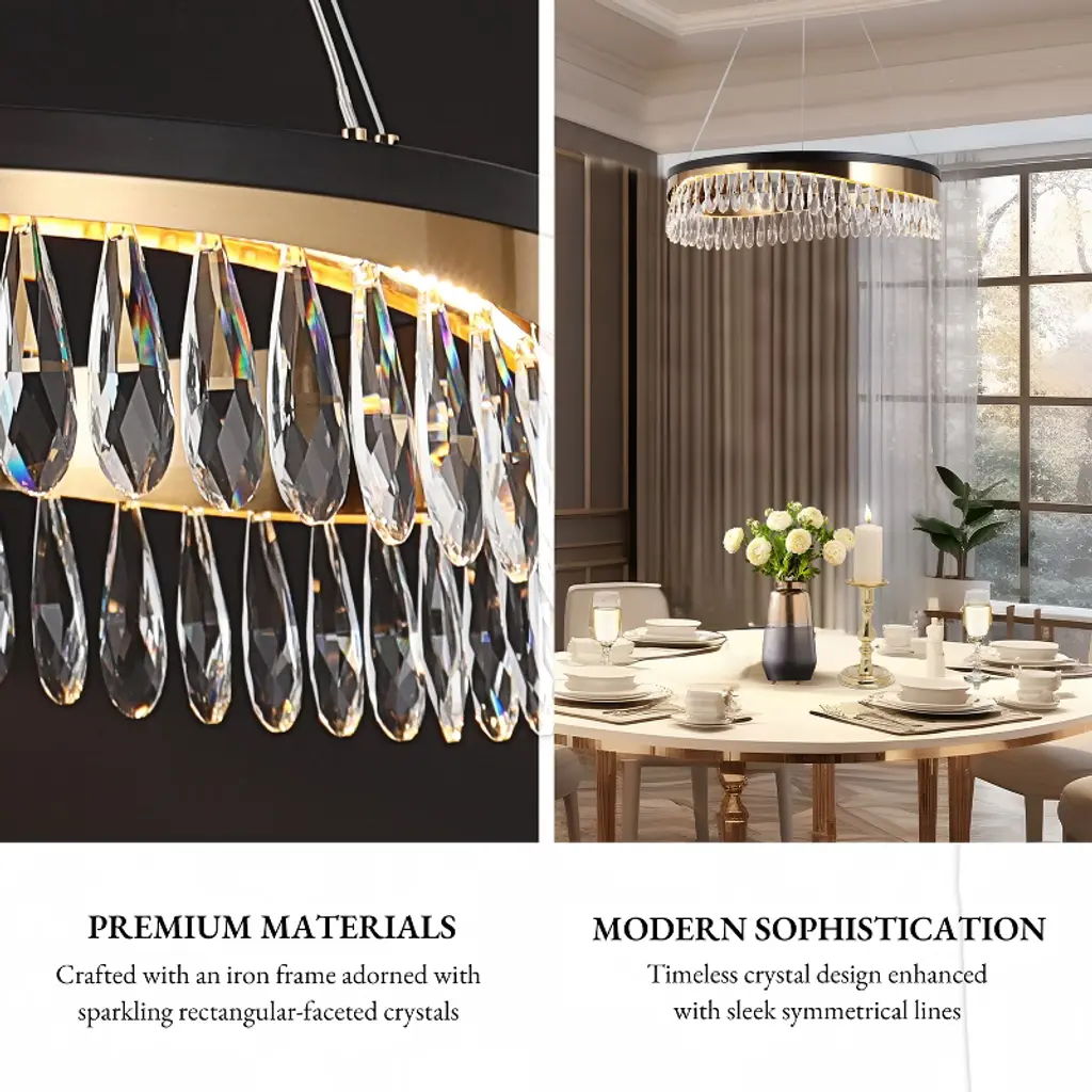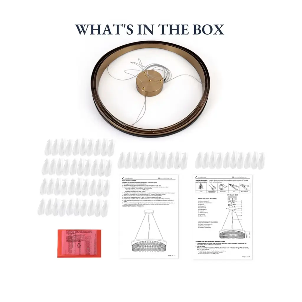 This light fixture is the epitome of bold luxury. Its embedded LED light strip not only provides brilliant illumination but also highlights its sophisticated design. The matte black finish paired with brass plating creates a striking contrast, while the crystal pendants add a touch of opulence. When switched on, it casts a romantic glow that gracefully transforms the space, much like a beautiful piano melody fills a grand concert hall. This light doesn’t just illuminate—it creates an atmosphere of elegance and serenity, offering a profound sense of freedom and relaxation.