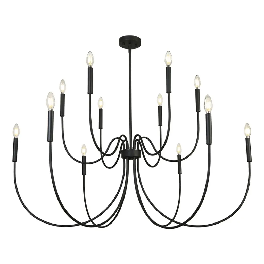 Lnc Dolohovstrout 12 -Light 47.2" Modern Tiered Candle Oversized Chandelier, Black