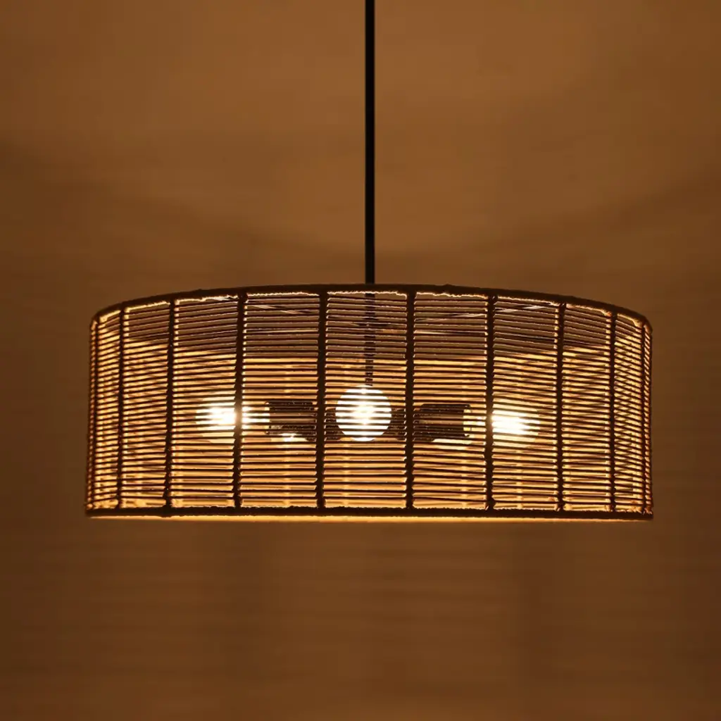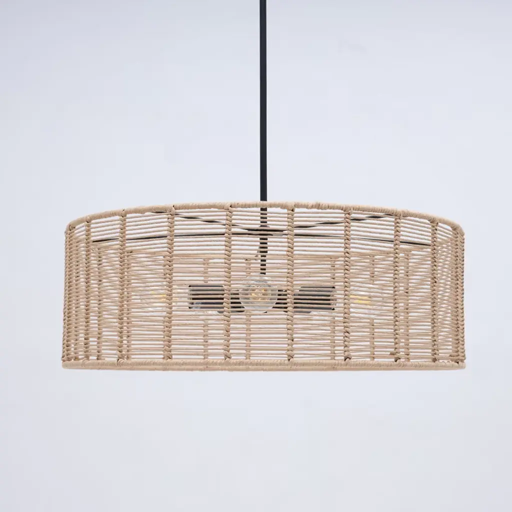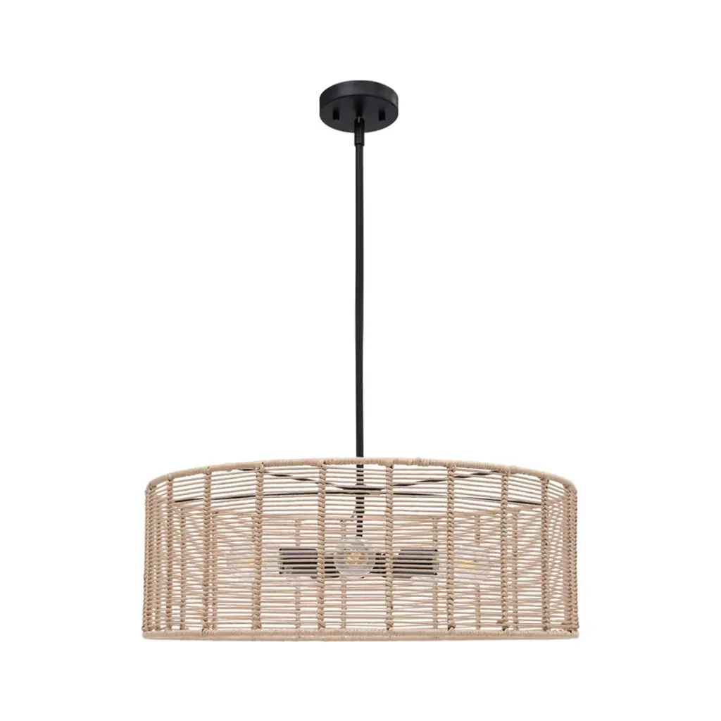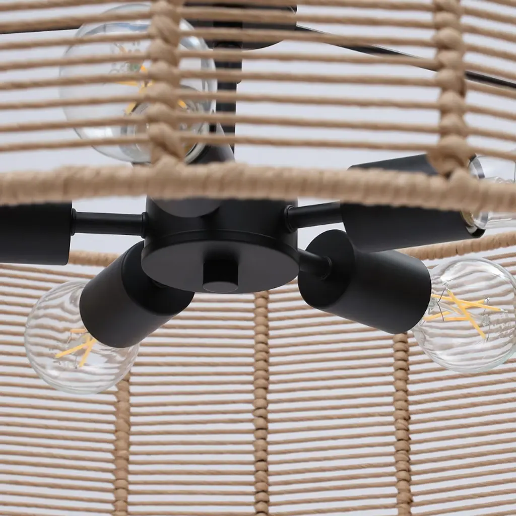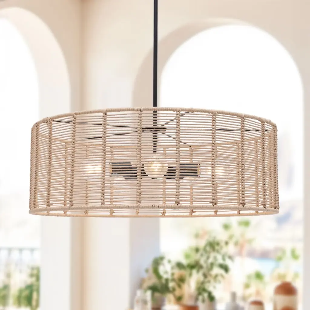 Lnc Eranthosys 5-lights 26" Traditonal Drum Chandelier, Natural And Matte Black