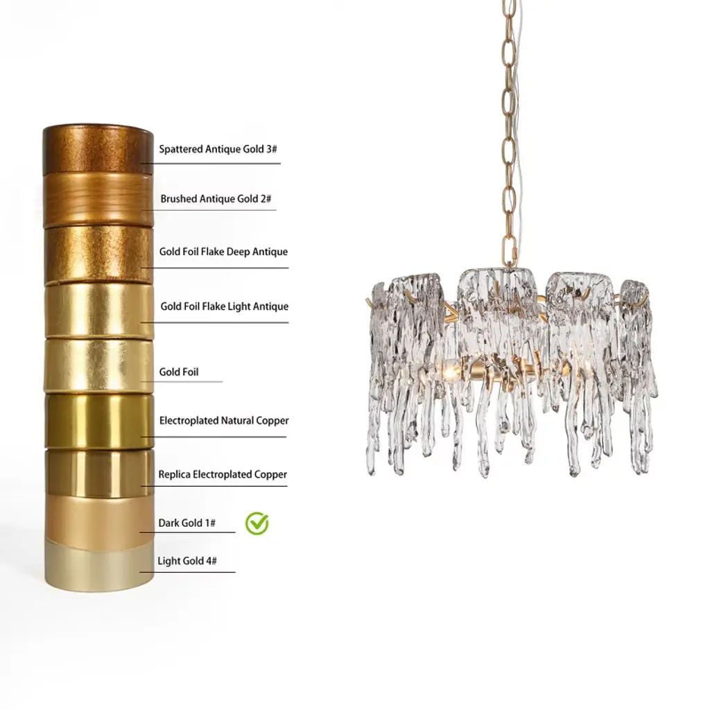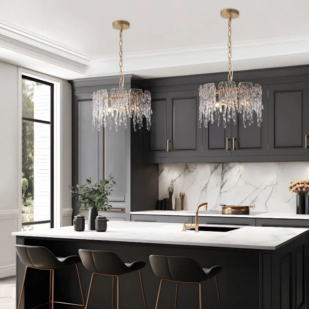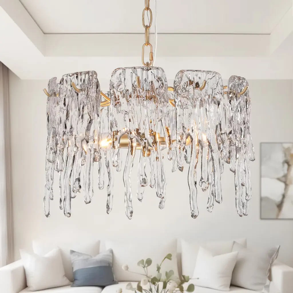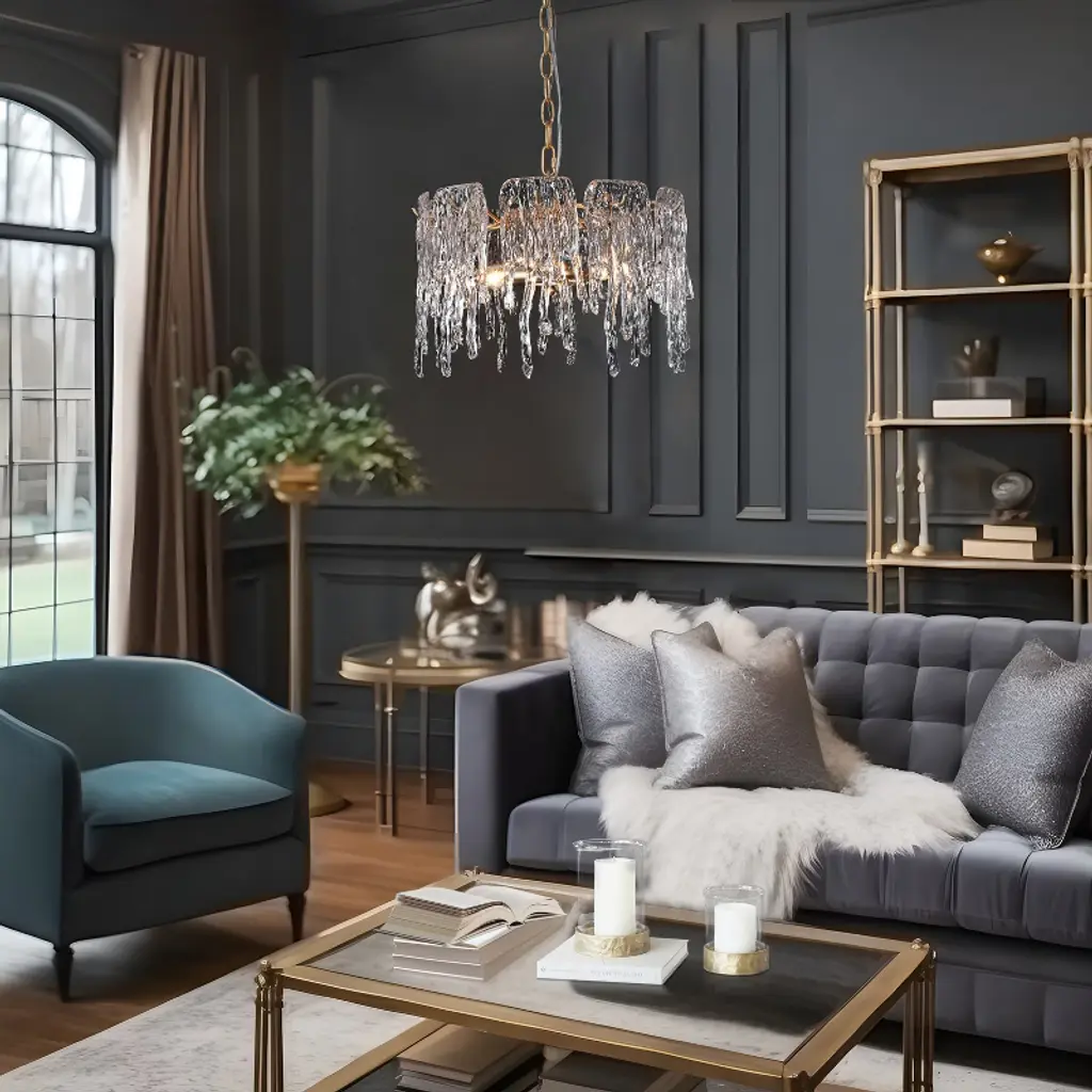 The LNC Eternal 15.5-in 3-Light Gold and Clear Glass Drum Modern Crystal Chandelier captures the fluid beauty of melting ice, creating a striking visual effect that blends modern sophistication with artistic charm. Featuring a luxurious gold finish and dazzling crystal drops, this chandelier captures the essence of fall with its radiant, golden glow, reminiscent of sunlight filtering through autumn leaves. The drum design adds a contemporary touch while the cascading crystals evoke the shimmer of morning frost. Ideal for dining rooms or entryways, this chandelier will transform your space into a cozy, yet sophisticated retreat for autumn gatherings and beyond.