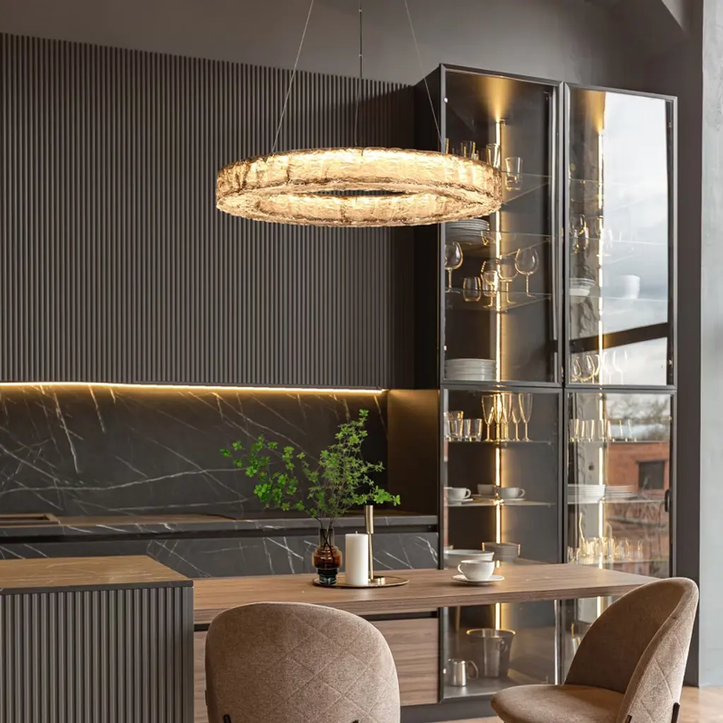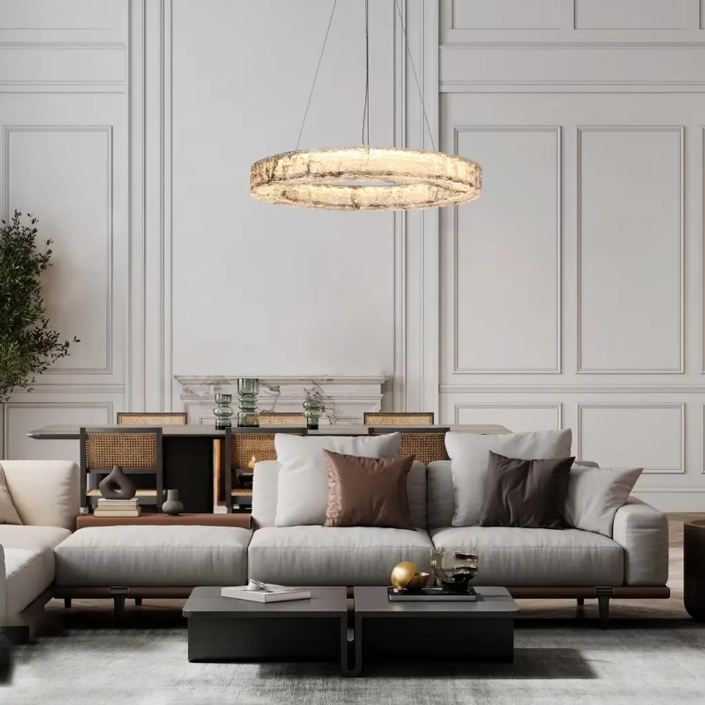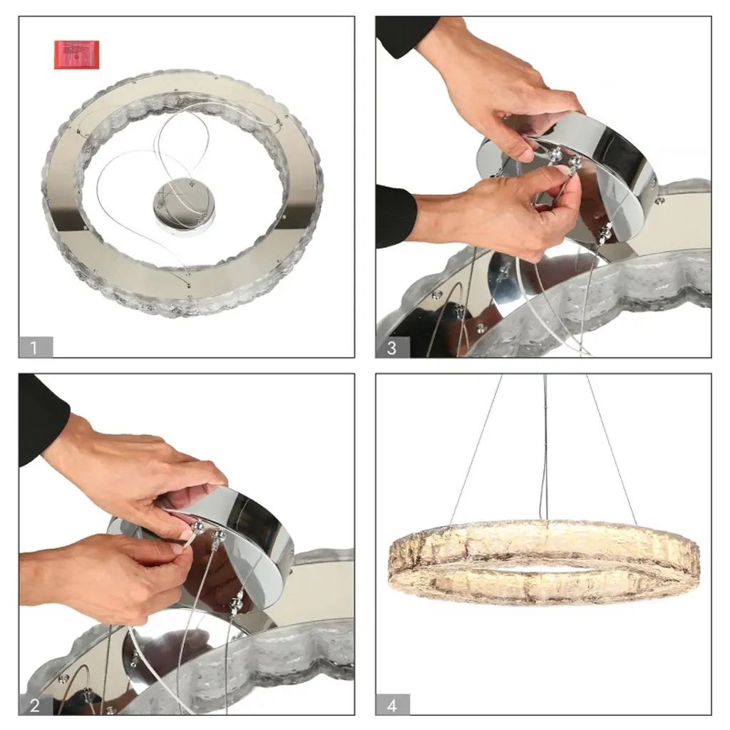 Lnc Janelreid 1-lights 31.5" Luxury And Glam Circle Resin Integrated Led Chandelier, Silver