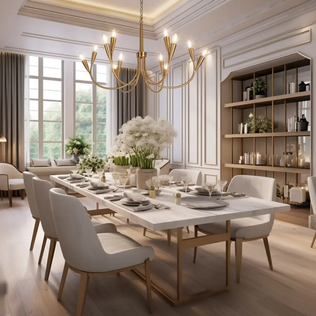 Adequate lighting plays a crucial role in enhancing the overall aesthetic of a home. The LNC Large Linear Candle-Shaped Modern Polished Brass Chandelier for Dining Room serves as a prime illustration of a chandelier that not only enhances the visual allure of a room but also mirrors the homeowner's uniqueness and discerning taste. Drawing inspiration from classic candelabras, this chandelier emanates the refined elegance of a Parisian salon. Its sleek silhouette and polished gold finish effortlessly harmonize with modern interior settings. Whether positioned above a dining table or in a living room, this chandelier cultivates a captivating ambiance that enriches any space.