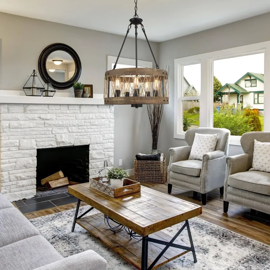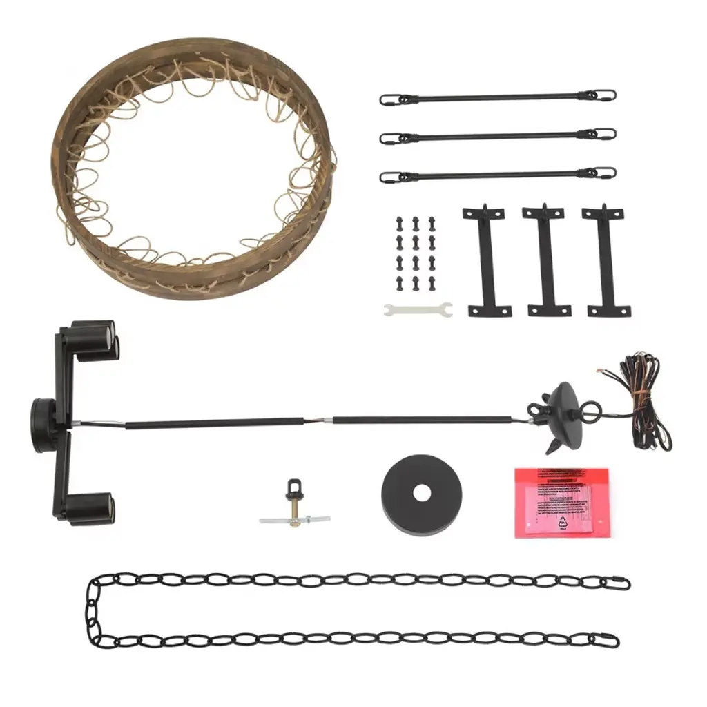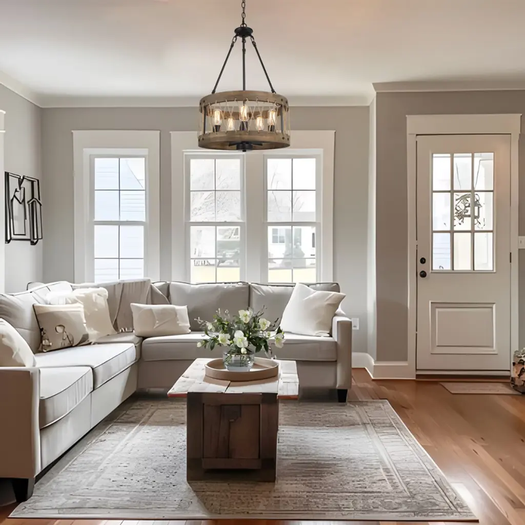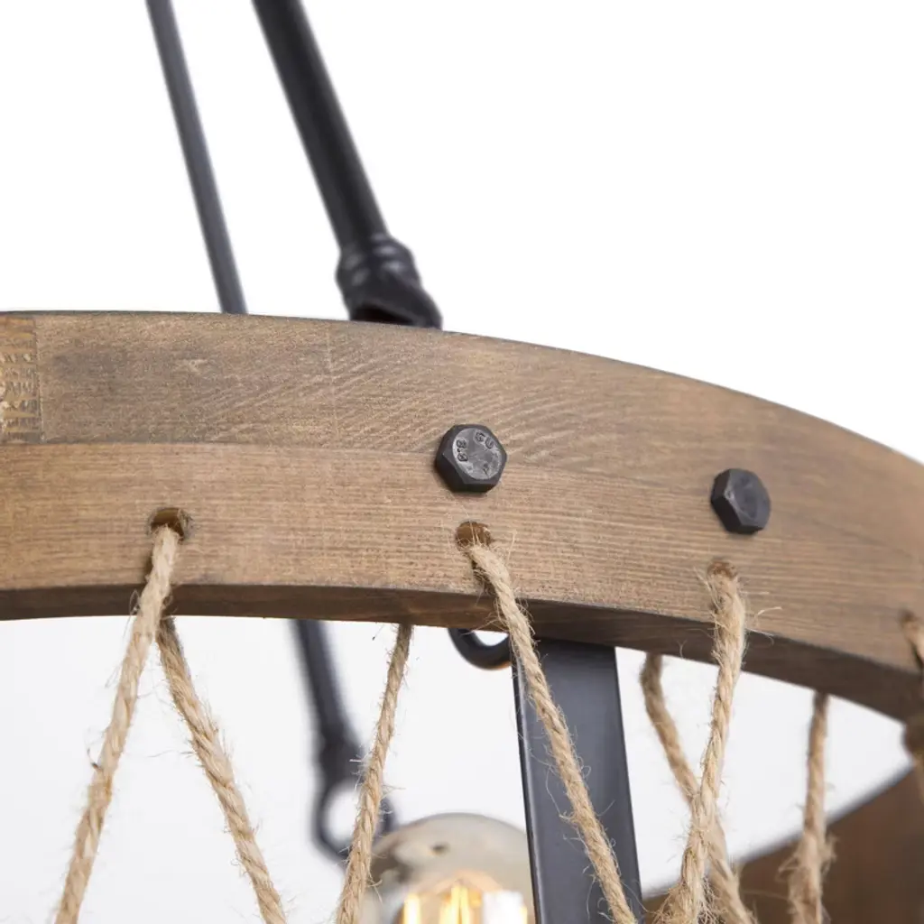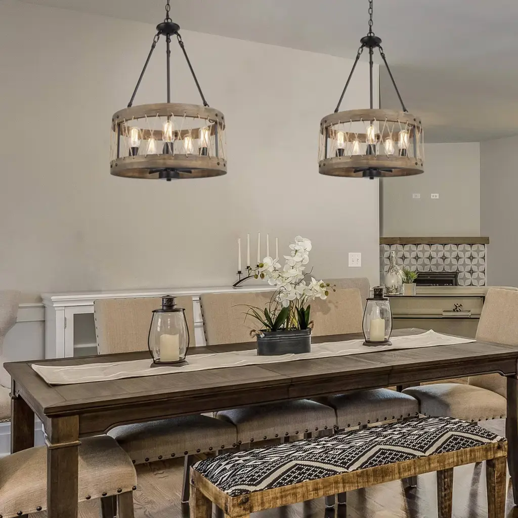 This 5-light chandelier from LNC Home pairs a distressed wooden frame with nature rope for a look that¡¯s both rustic and elegant. At 18" wide by 27.5" high with an adjustable chain (30.5" to 87.5"), it adapts to flat or sloped ceilings in dining rooms, foyers, or open living spaces. From the Laius collection, this design balances organic materials with timeless form, blending farmhouse warmth and classic appeal. It offers everyday function while transforming interiors with soft light and artisanal charm. Bulbs not included.