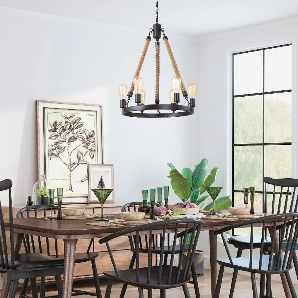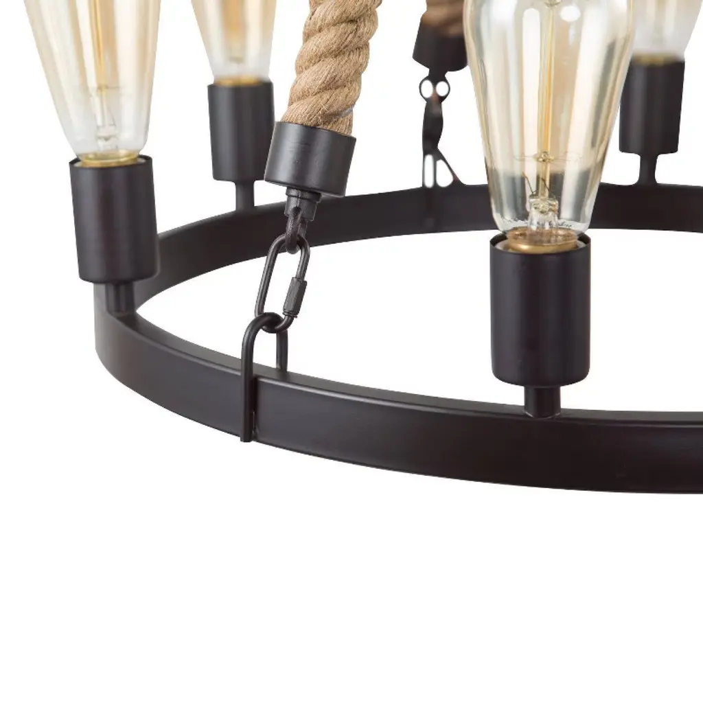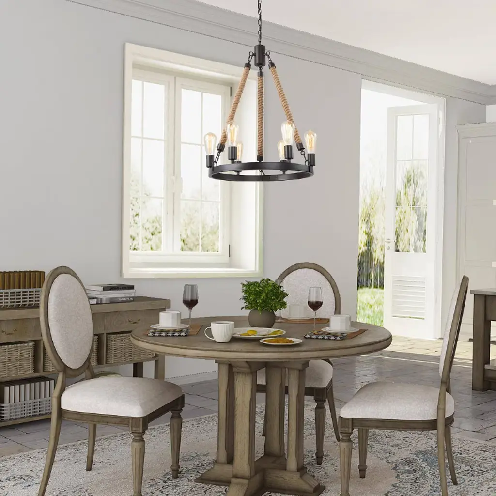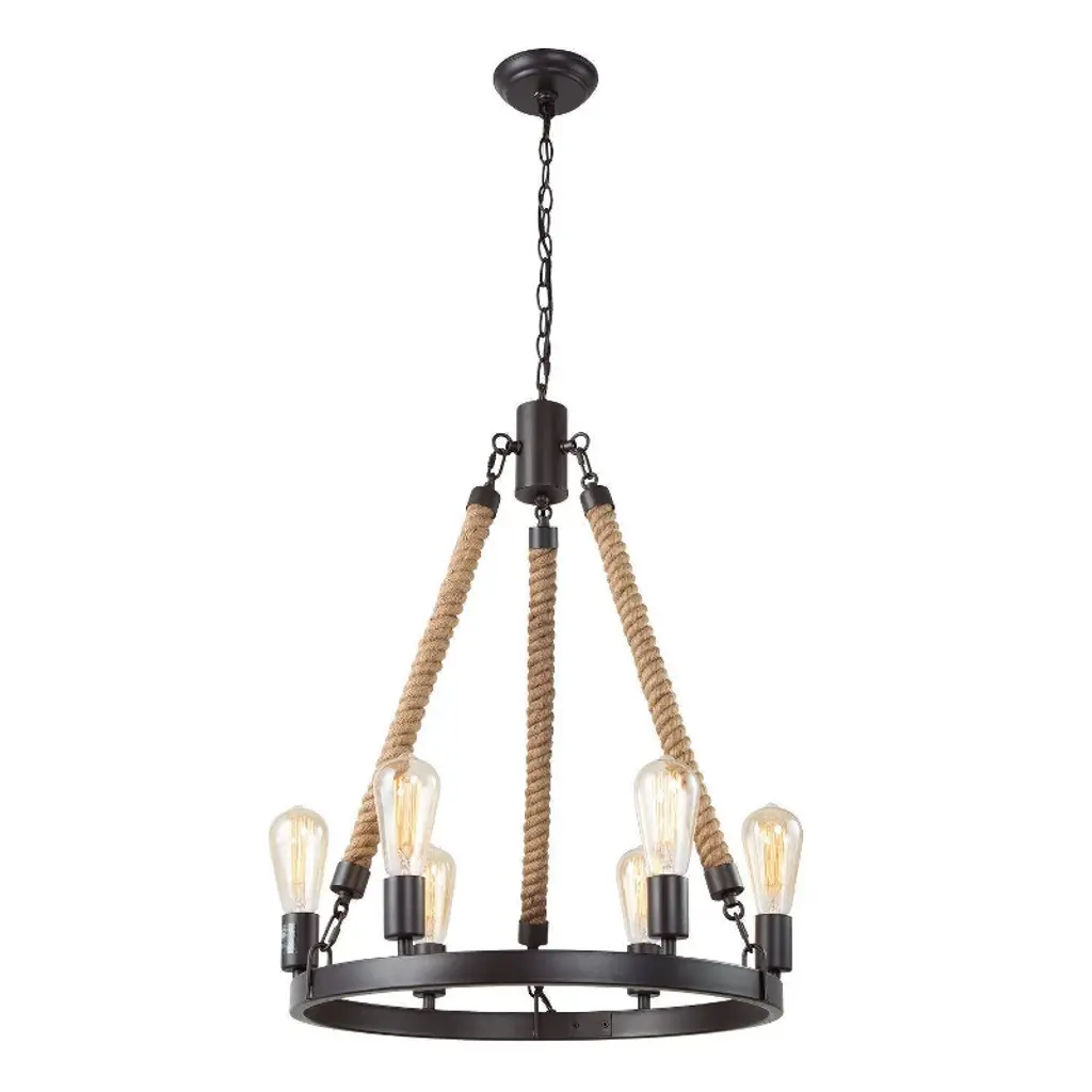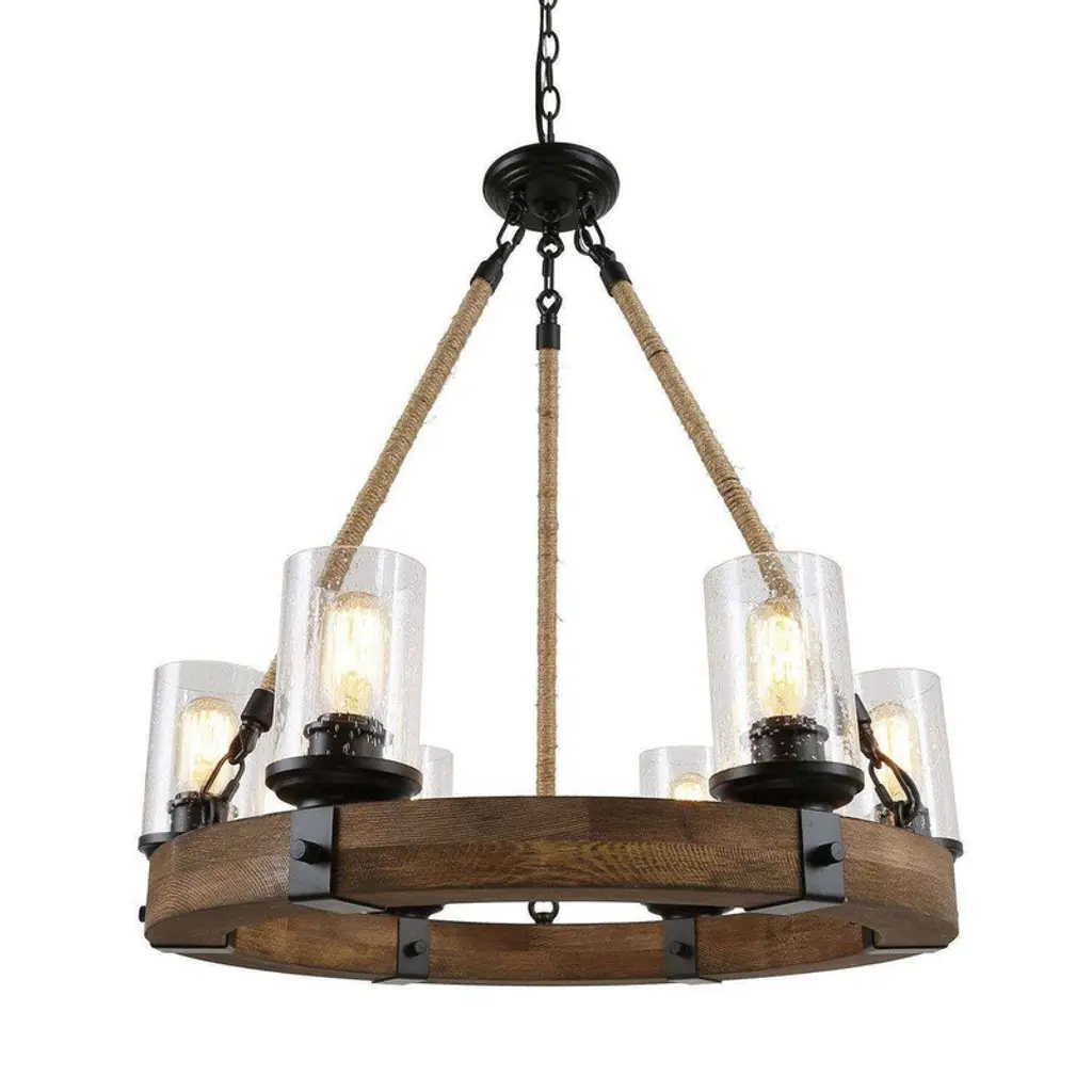 Lnc Laius 20.5-in Dining Room Wagon Wheel Chandelier, 6-light Brown With Rope, Modern Farmhouse